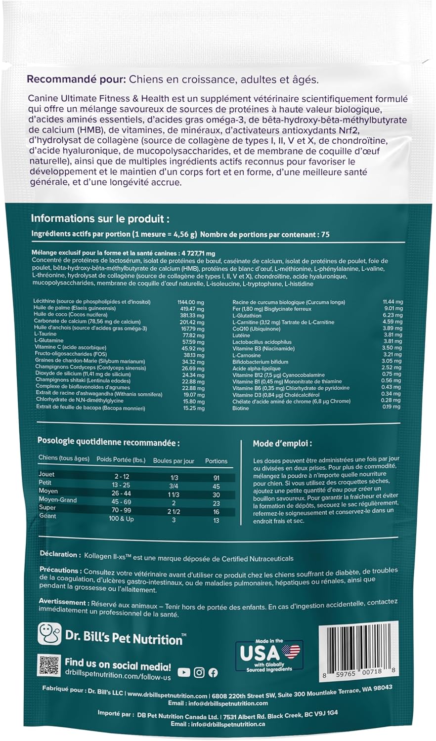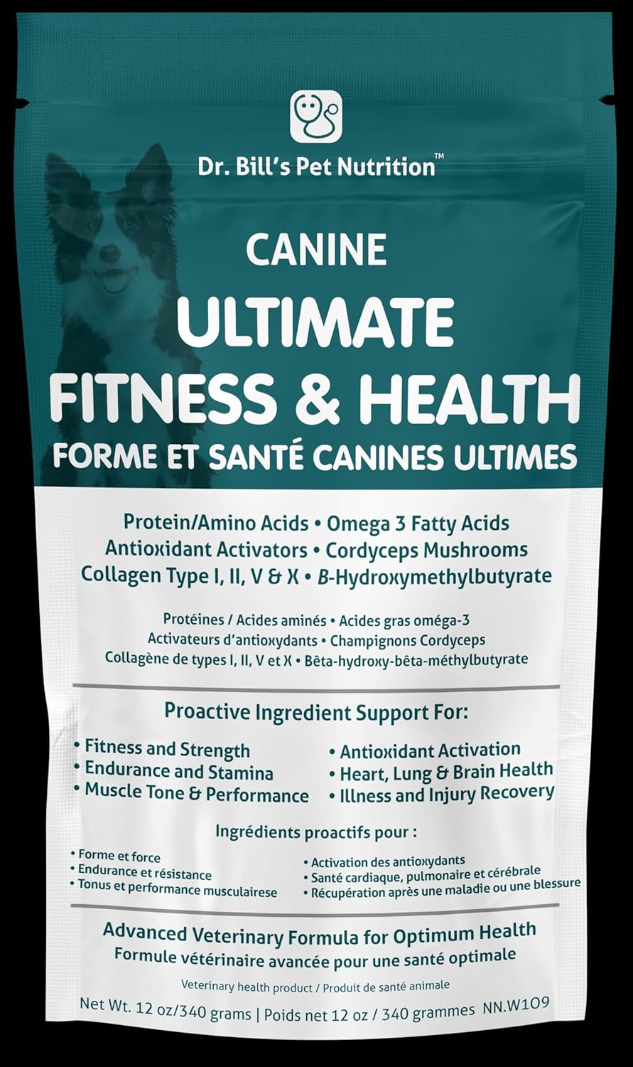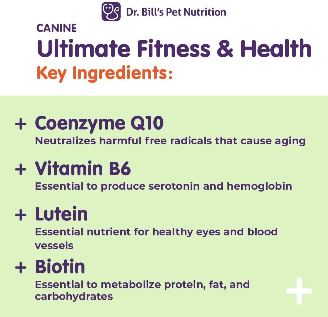 Dr. Bill’s Canine Ultimate Fitness & Health (340g) | Complete Multivitamin for Dogs | Pet Supplement | Includes Coenzyme Q-10, Vitamin E, Vitamin D-3, Biotin, Folic Acid, and Hyaluronic Acid