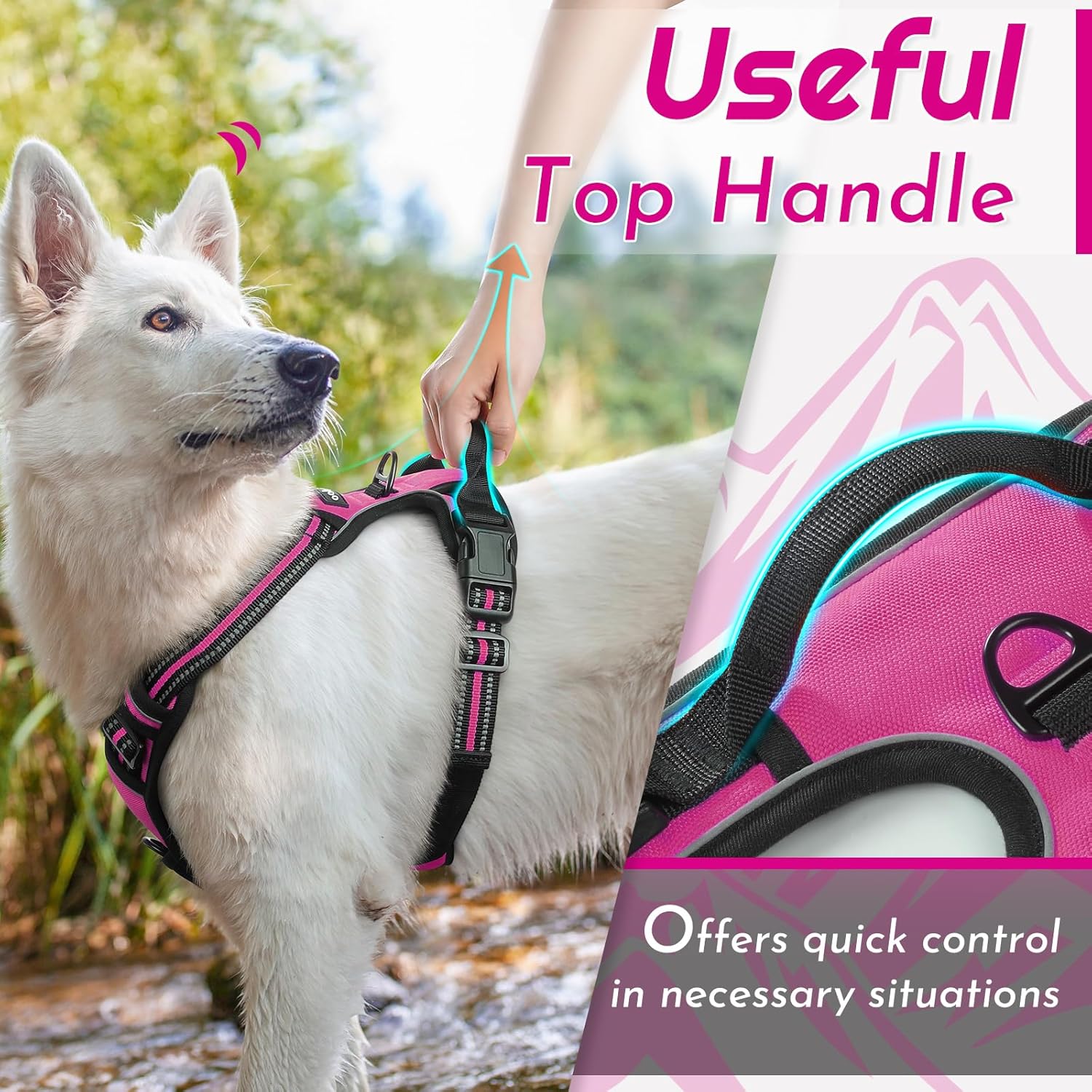 Eagloo Dog Harness No Pull, Walking Pet Harness with 2 Metal Rings and Handle, Adjustable Reflective Breathable Oxford Soft Easy Control Vest for Small Medium Large Dogs, Rose Red, L