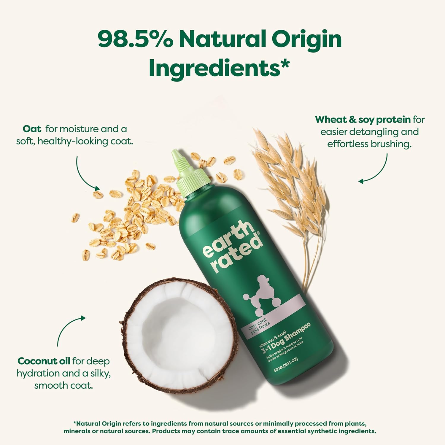 Earth Rated (A Canadian Company), 3-in-1 Detangling Dog Shampoo and Conditioner, Deodorizing Oatmeal Shampoos for Dogs and Puppies, Great for Smelly Pets, White Tea and Basil Scent, 473 ml