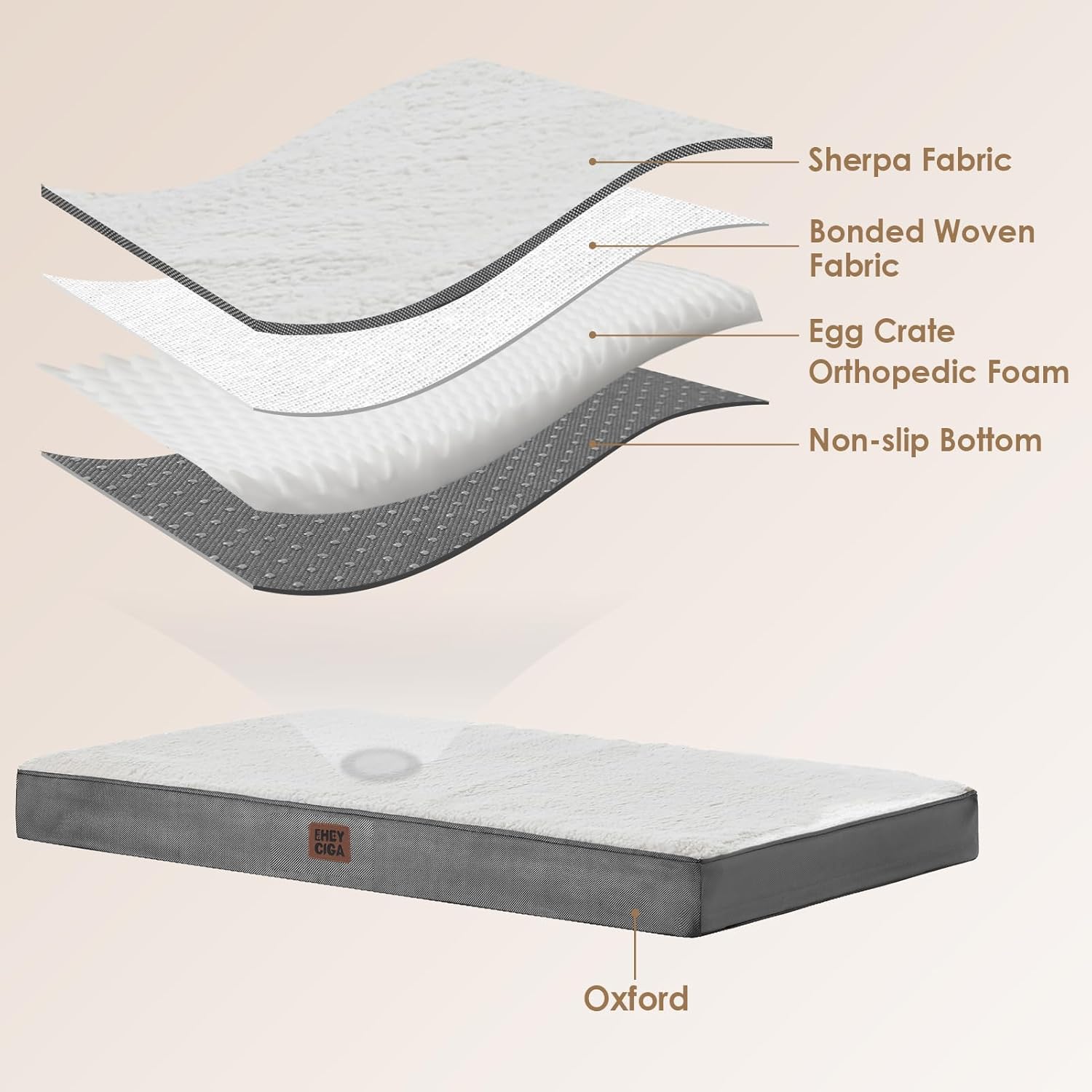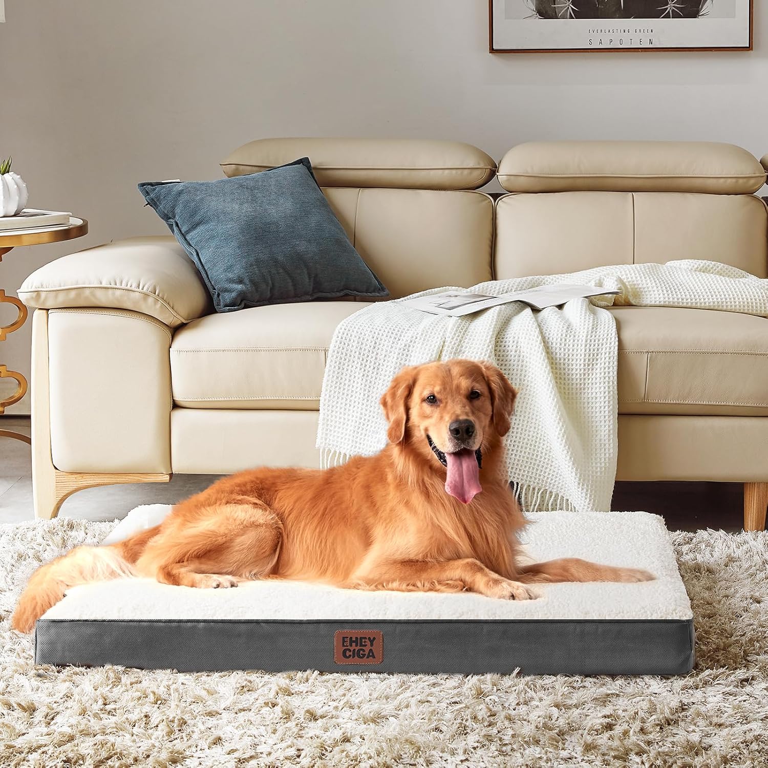 EHEYCIGA Large Dog Bed, Orthopedic Dog Beds for Large Dogs, Washable Big Dog Mattress with Removable Cover and Non-Slip Bottom, Pet Bed with Foam, Beige
