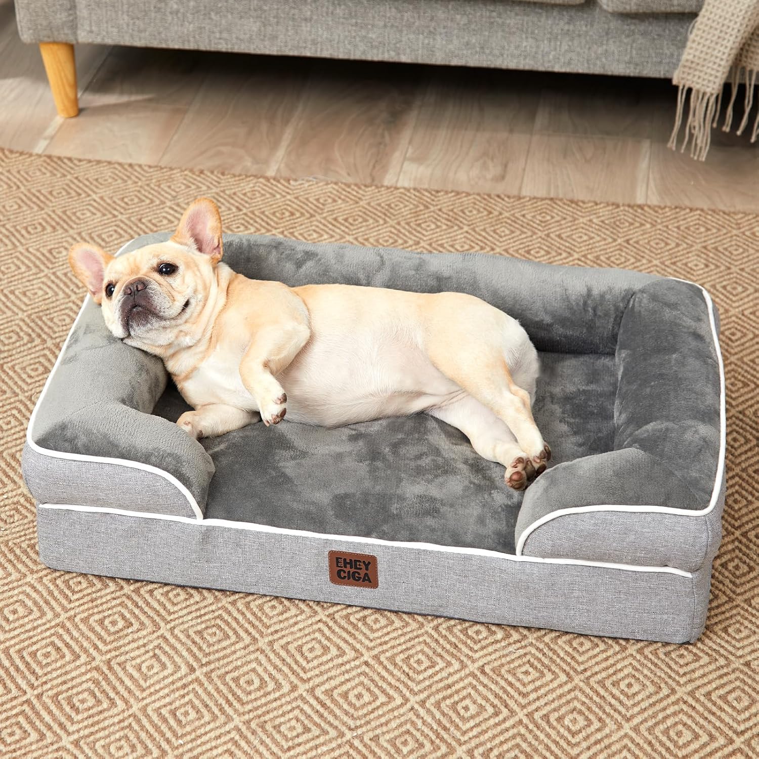 EHEYCIGA Memory Foam Orthopedic Large Dog Bed with Sides, Waterproof Liner Dog Beds for Large Dogs, Non-Slip Bottom and Egg-Crate Foam Large Dog Couch Bed with Washable Removable Cover