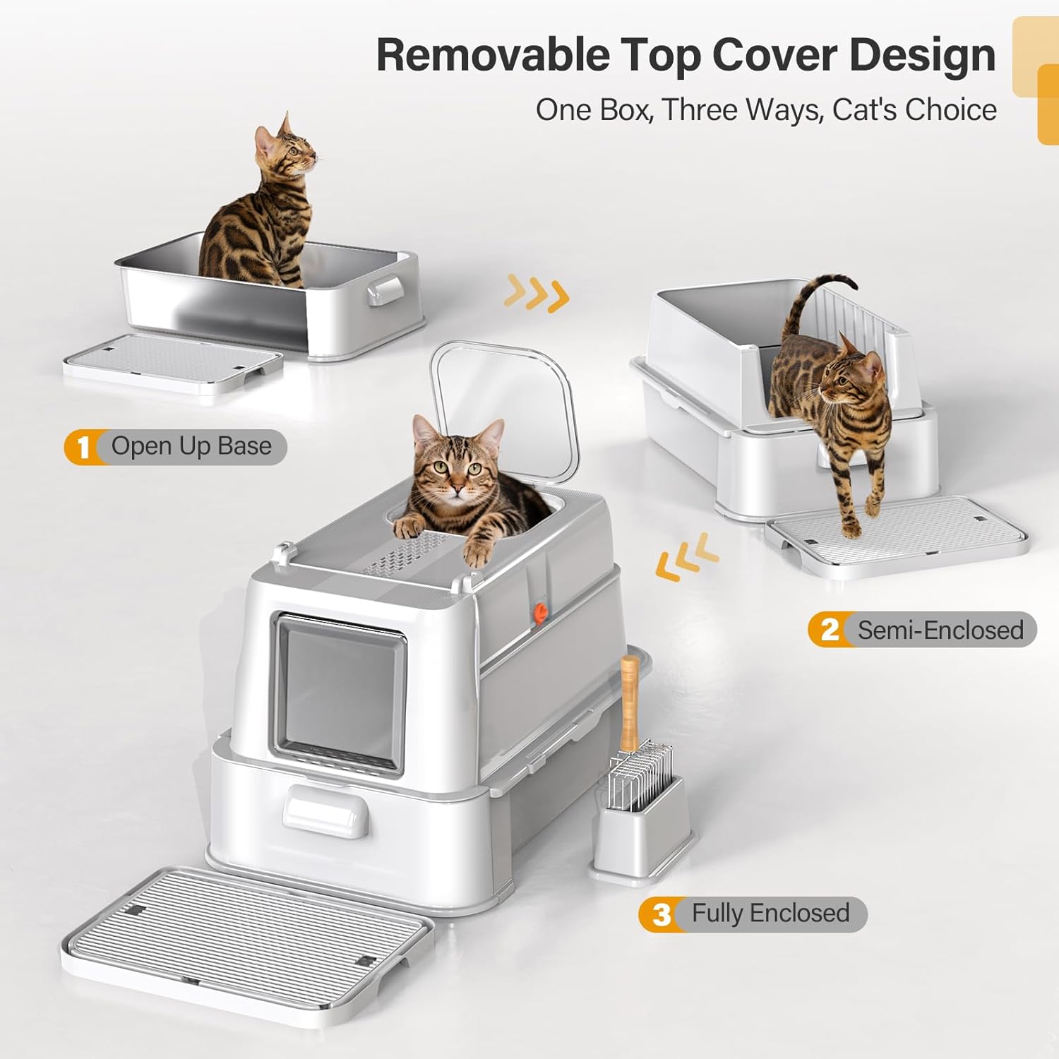 Enclosed Stainless Steel Cat Litter Box with Lid,XL Large Metal Cat Box with Drawer for Big Cats,Top Exit Kitty Litter Box Includes Scoop, Filter Pedal,Odor Control, Easy Cleaning