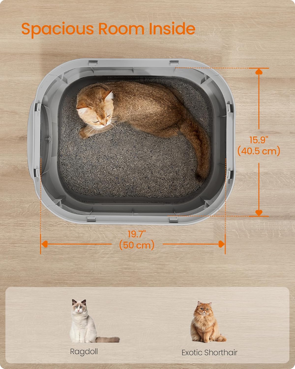 Feandrea Cat Litter Box with Lid, XL Enclosed Litter Box with Slide-Out Tray, Scoop, Brush, Anti-Tracking, for Cats of Different Sizes, Dove Gray and Slat Gray UPPT002B01