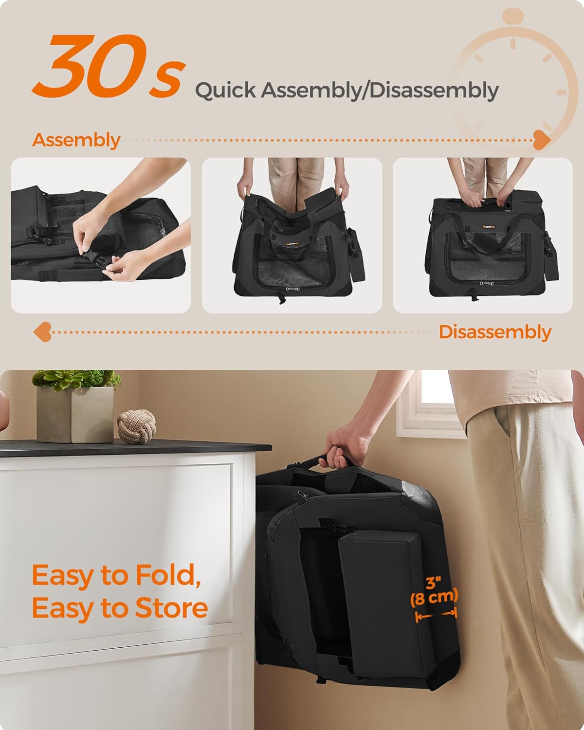 Feandrea Dog Crate, Collapsible Pet Carrier, M, Portable Soft Dog Crate, Oxford Fabric, Mesh, Metal Frame, with Handle, Storage Pockets, 24 x 16.5 x 16.5 Inches, Black UPDC60H