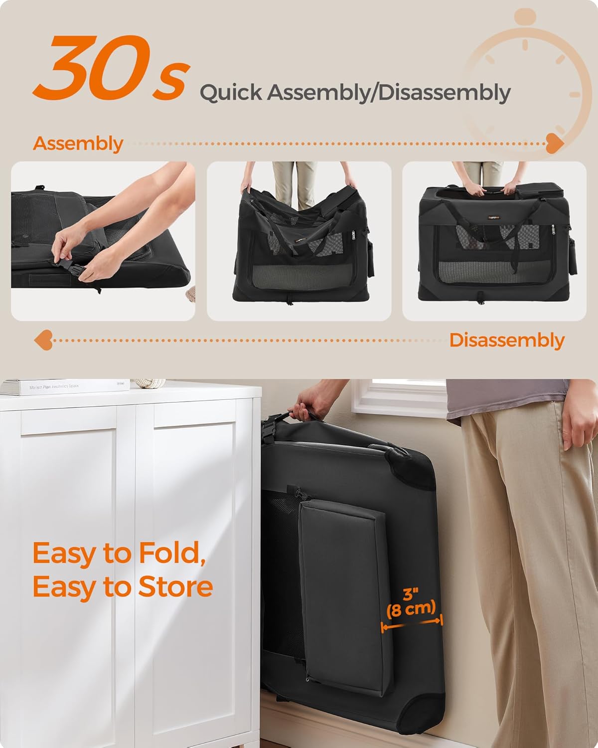 Feandrea Dog Crate, Collapsible Pet Carrier, XL, Portable Soft Dog Crate, Oxford Fabric, Mesh, Metal Frame, with Handle, Storage Pockets, 32 x 23 x 23 Inches, Black UPDC80H