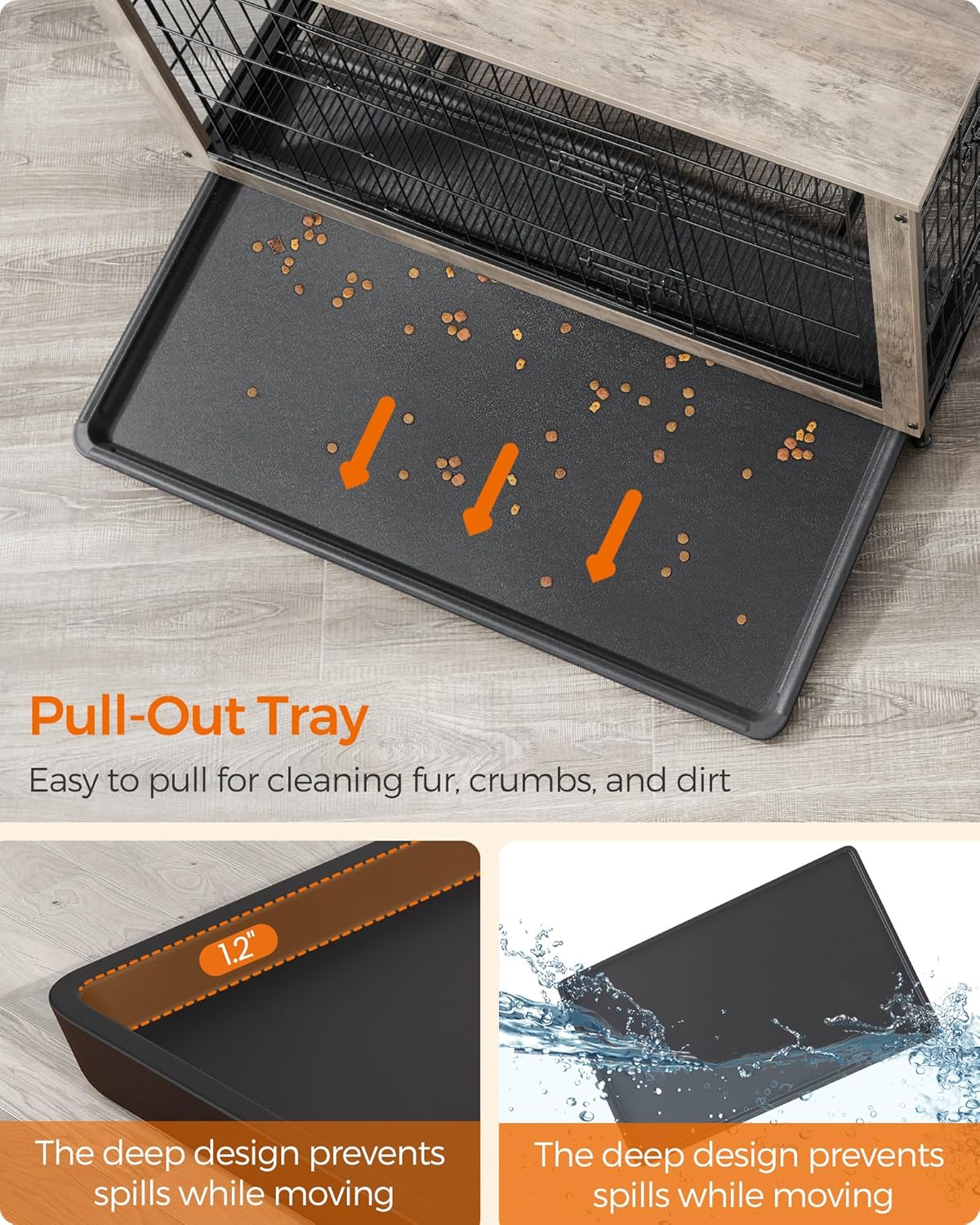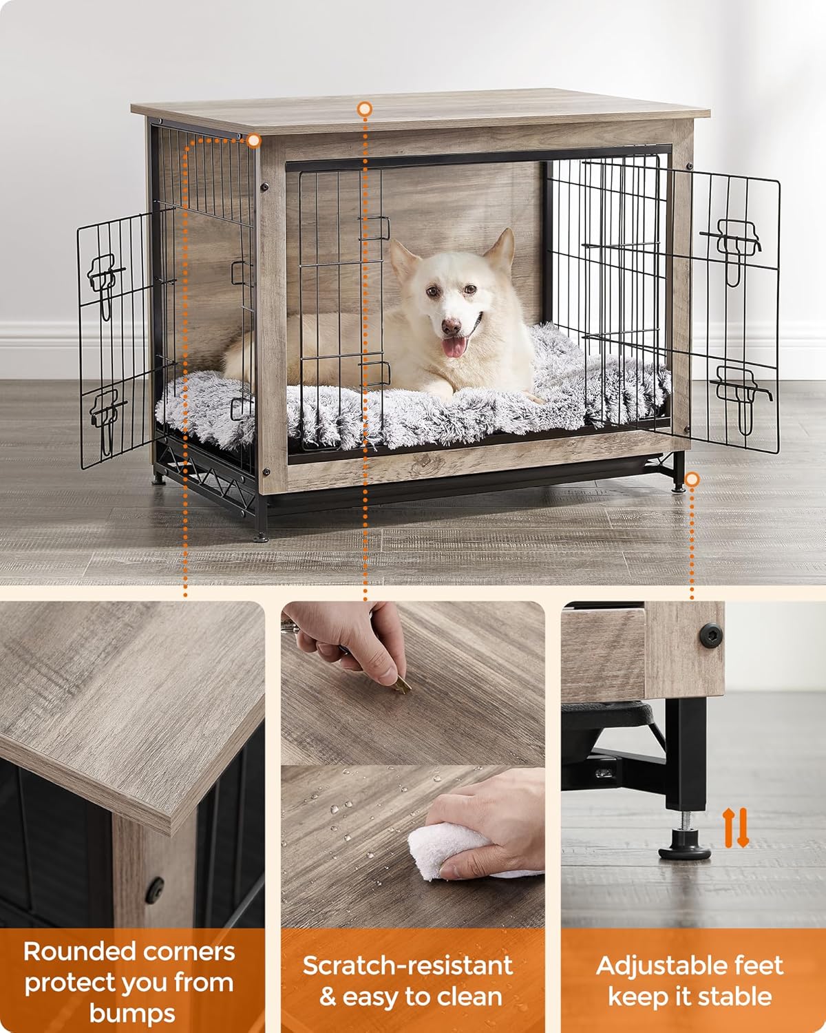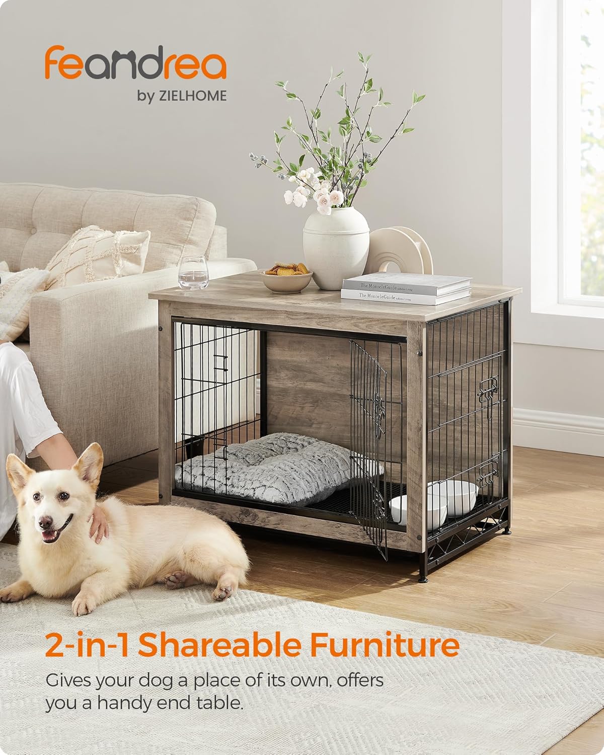 Feandrea Dog Crate Furniture, Side End Table, Heavy-Duty Modern Kennel Cage with Multi-Purpose Removable Tray, Double Doors, for Dogs up to 20 kg, Greige UPFC002G01