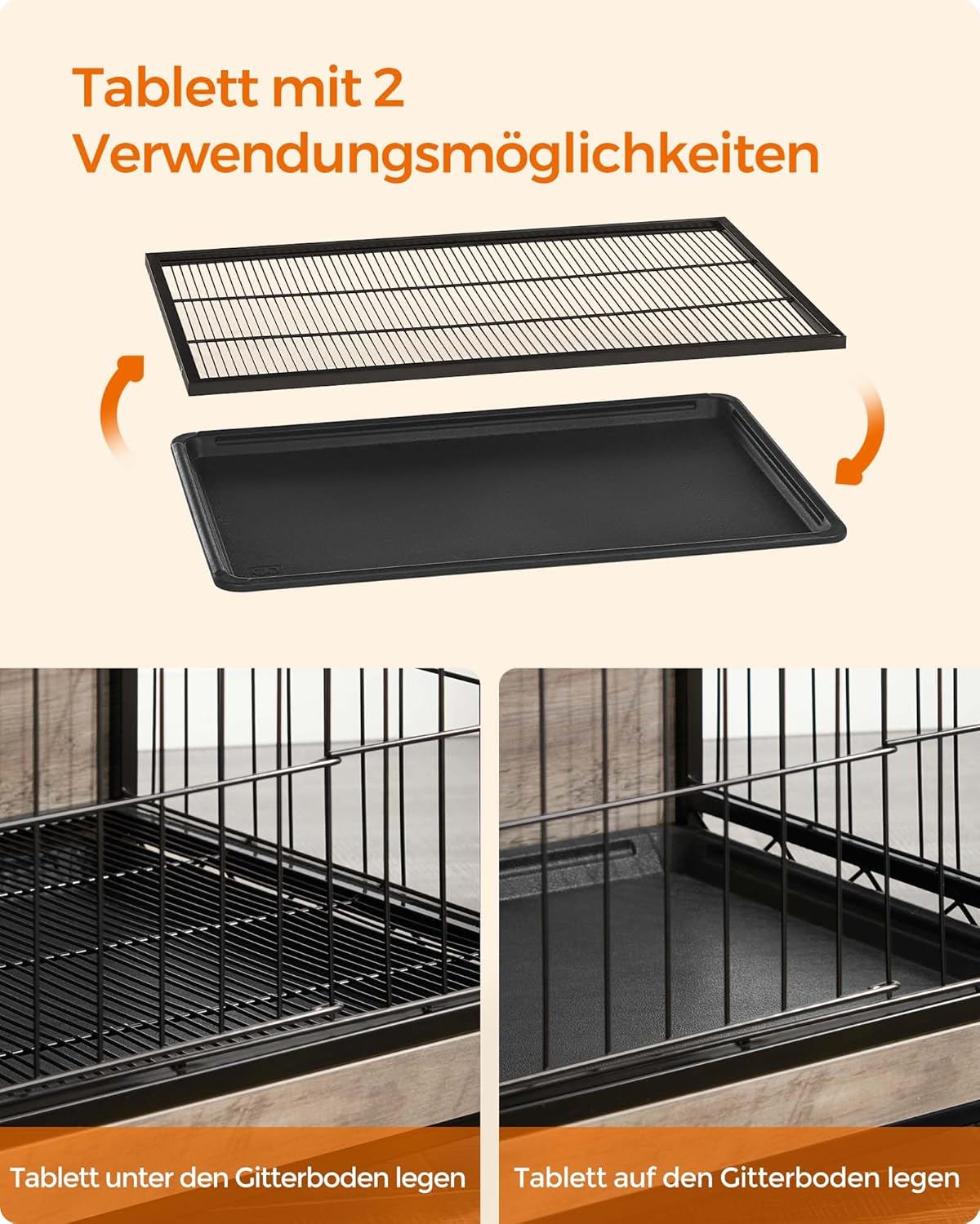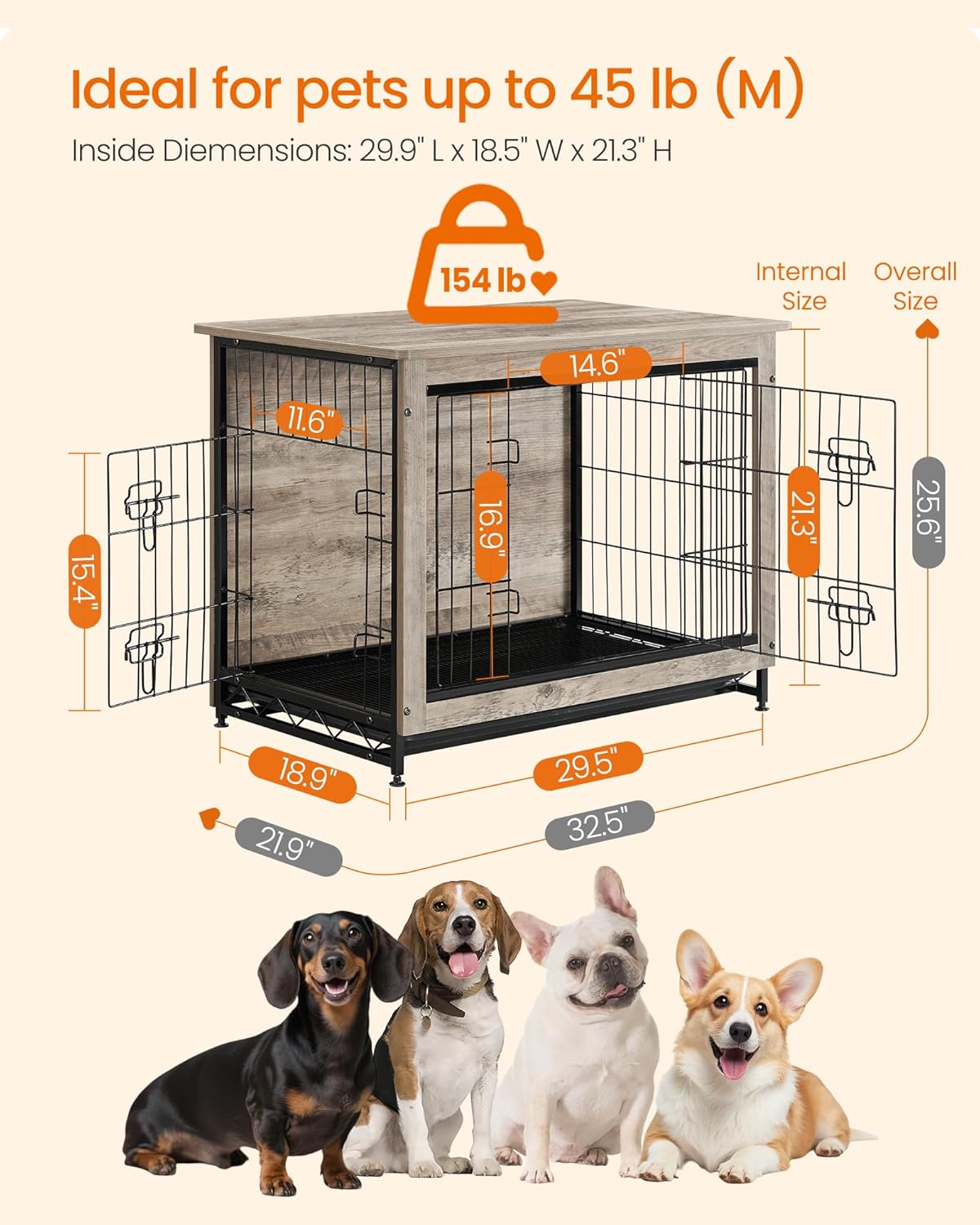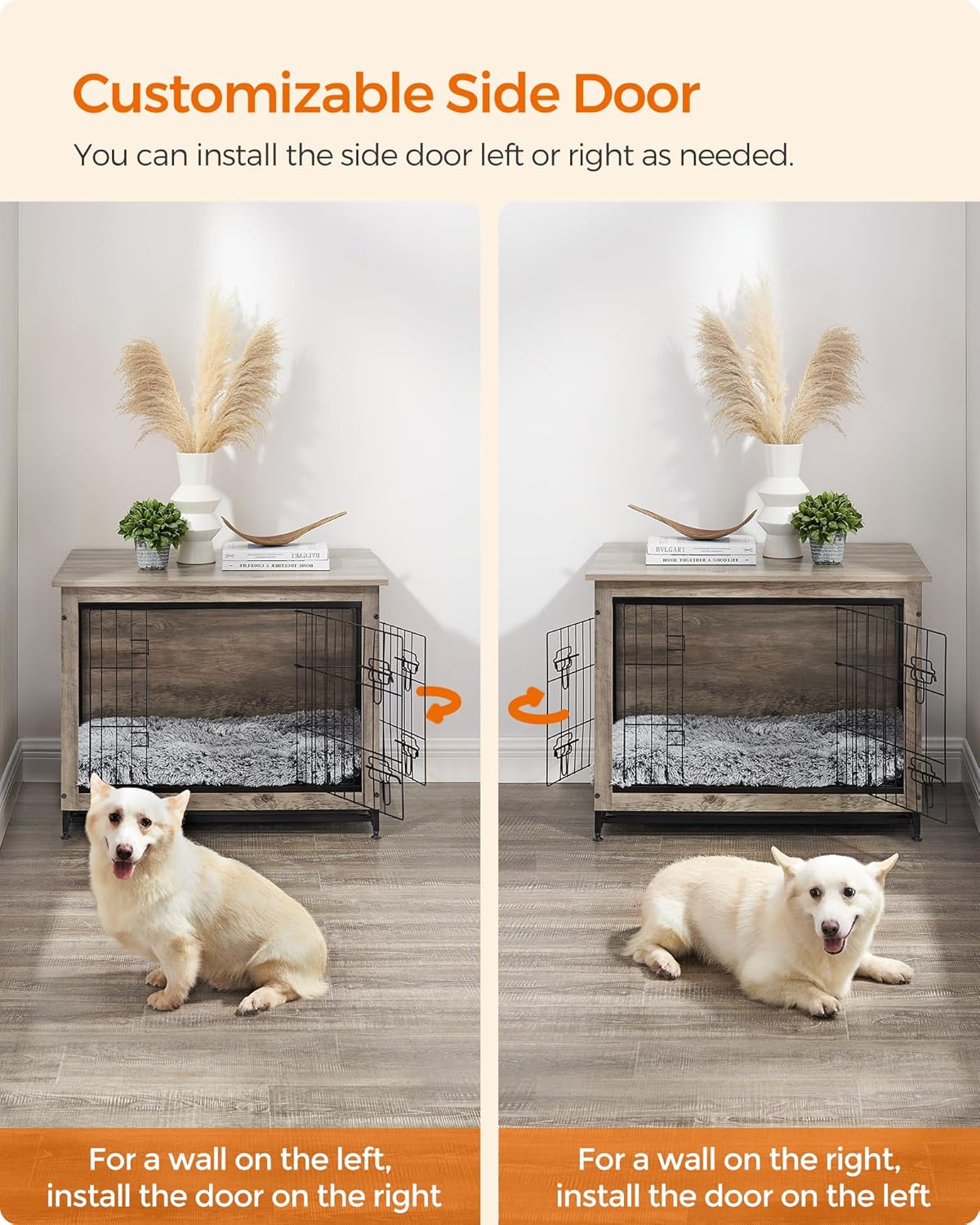 Feandrea Dog Crate Furniture, Side End Table, Heavy-Duty Modern Kennel Cage with Multi-Purpose Removable Tray, Double Doors, for Dogs up to 20 kg, Greige UPFC002G01