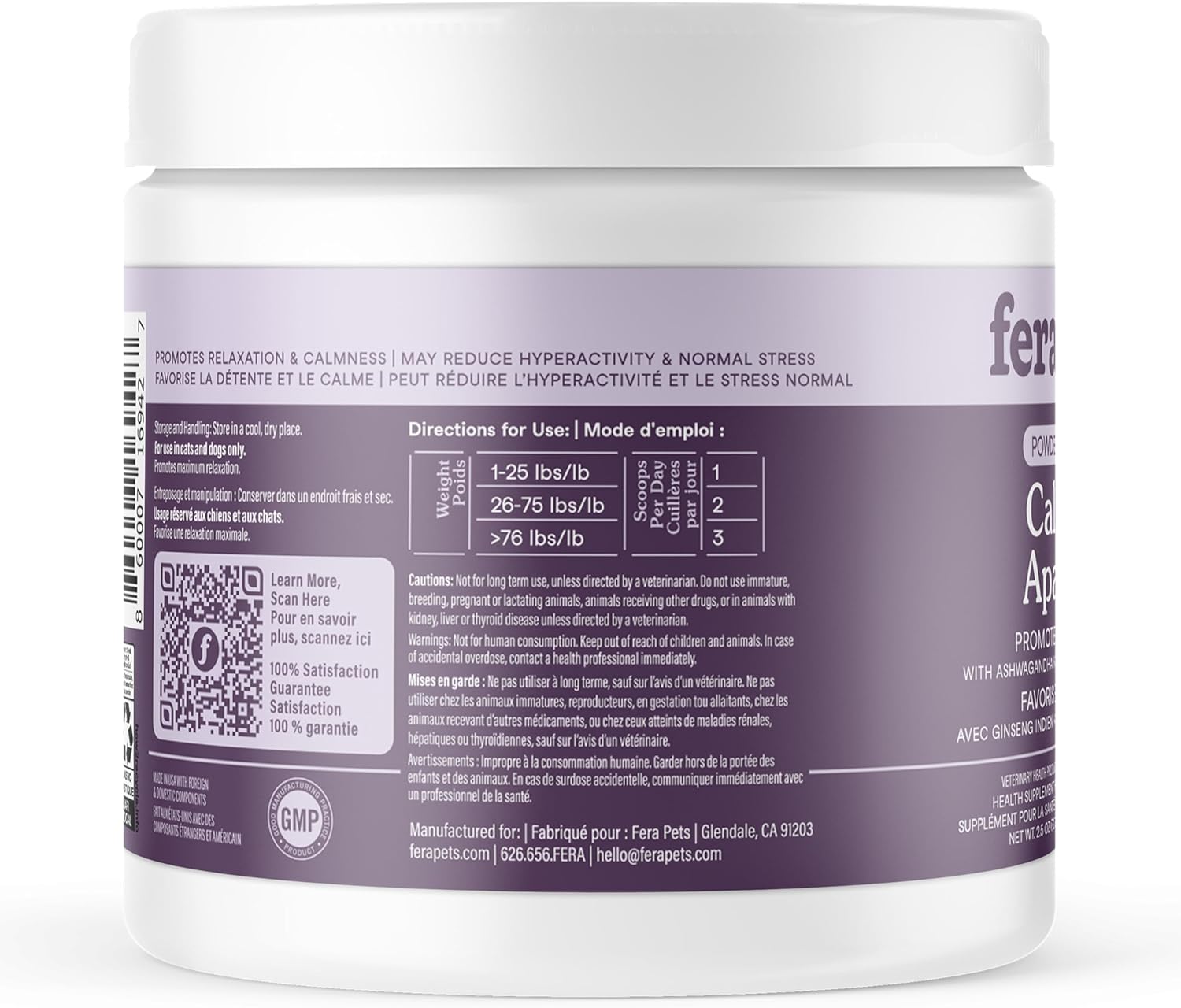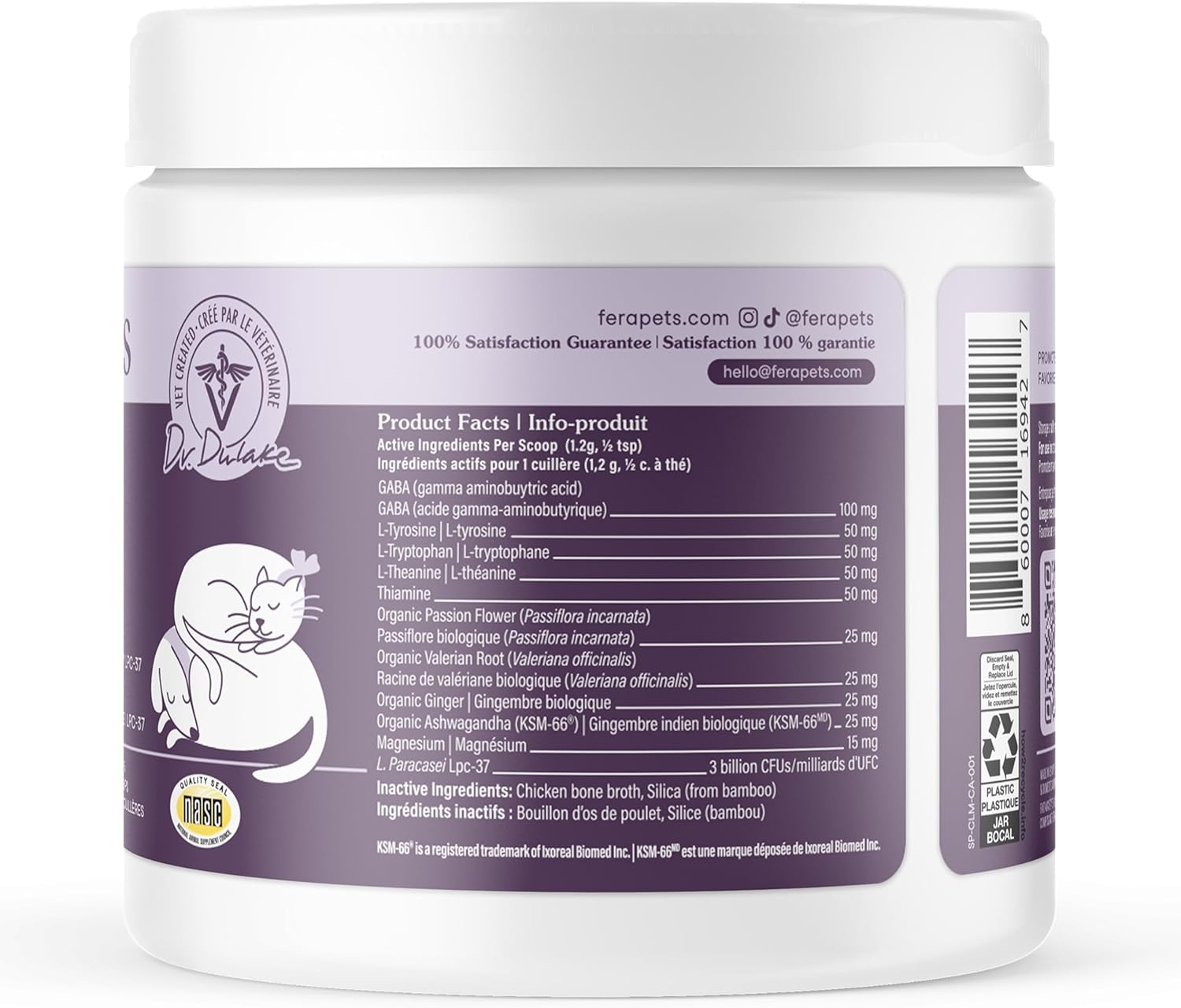 Fera Pet Organics Calming Supplement for Dogs & Cats – Vet Created – GABA & Ashwagandha Supplements Help Cat & Dog Anxiety, Stress or Hyperactivity -60 Scoops