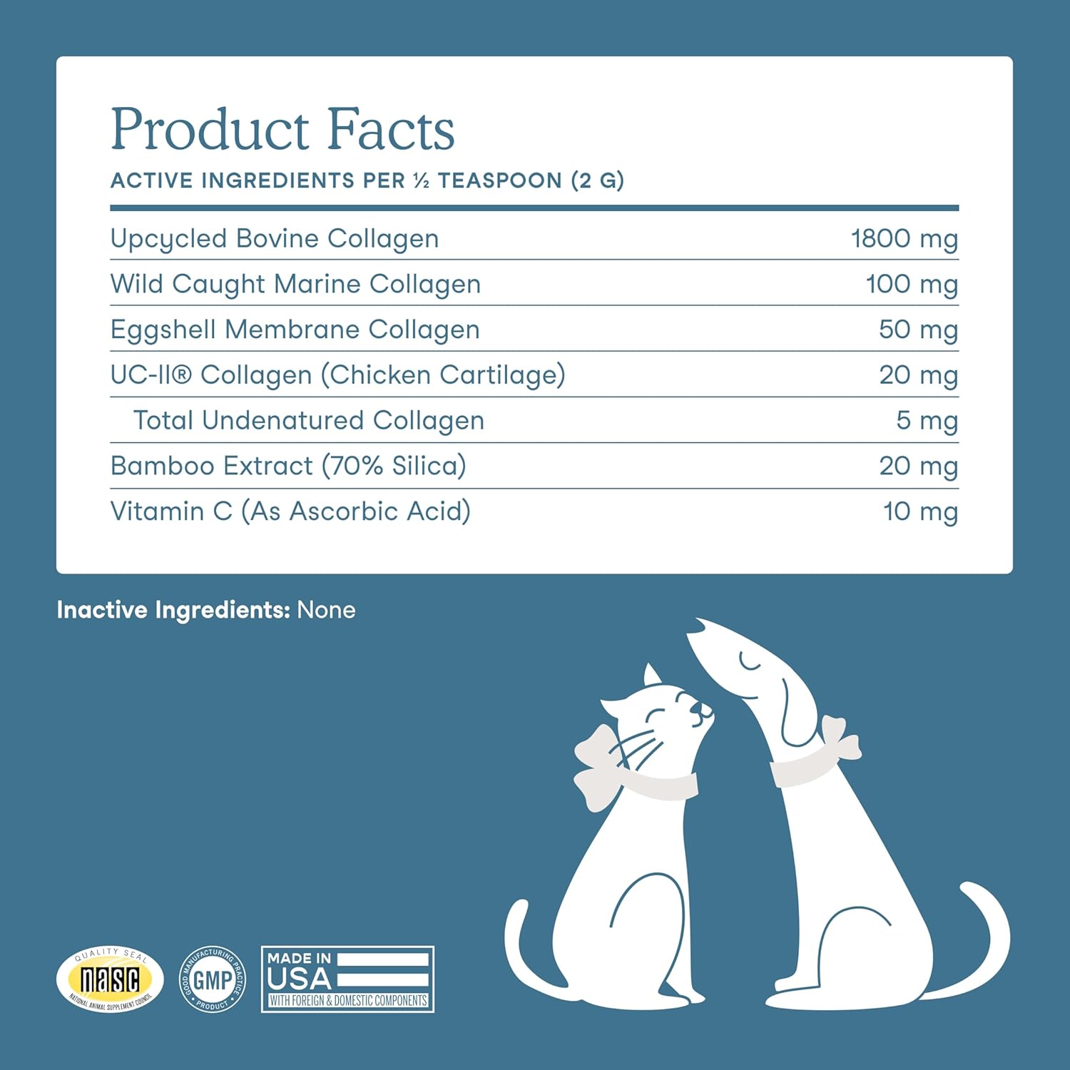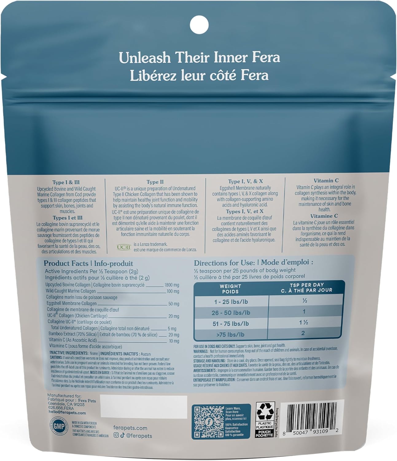 Fera Pets Cat & Dog Collagen Powder – Bone, Gut, Joint and Skin Supplement – 5 Types of Collagen + Clinically Studied UC-II® – 4.23 oz