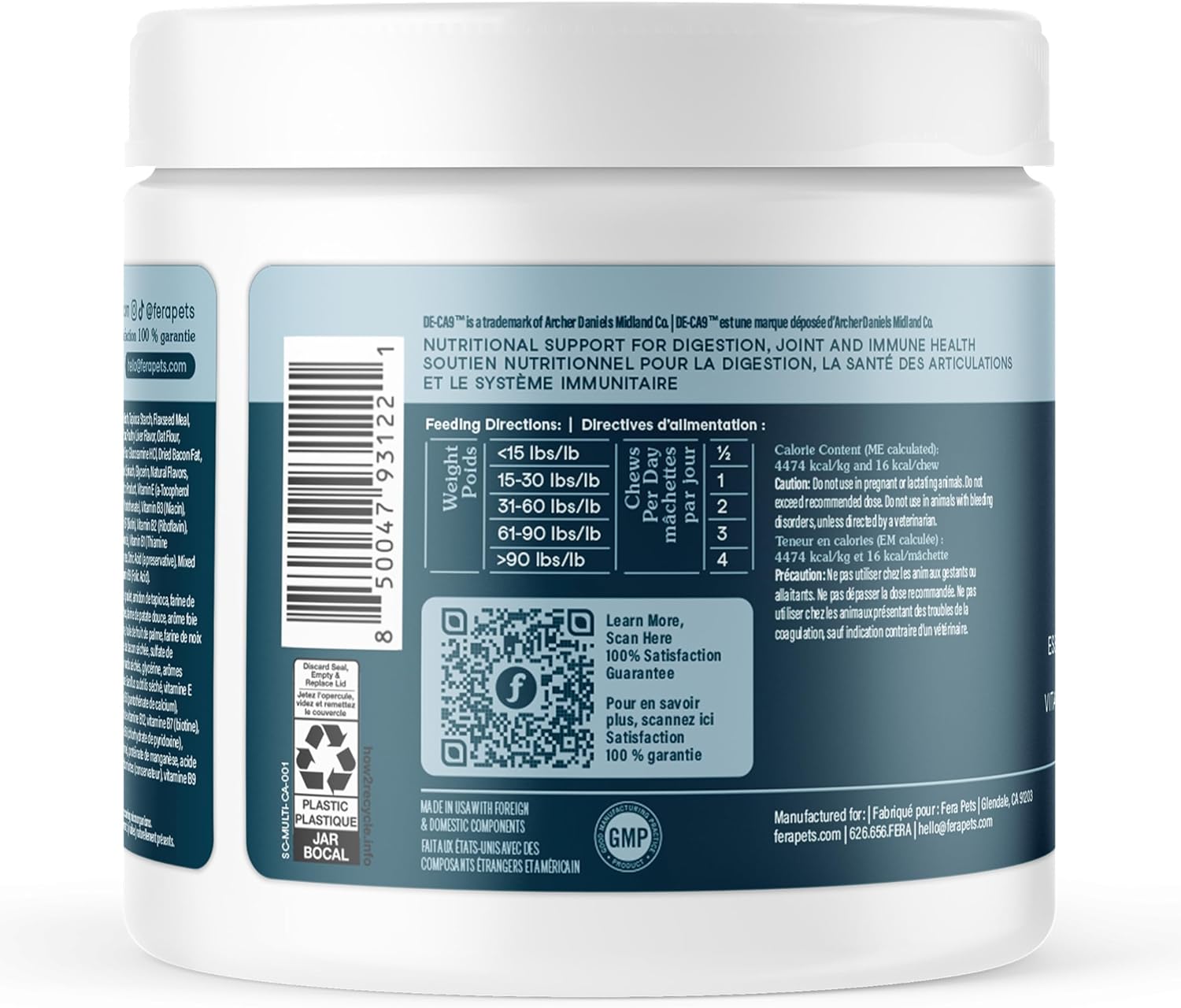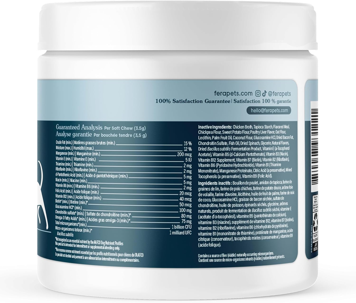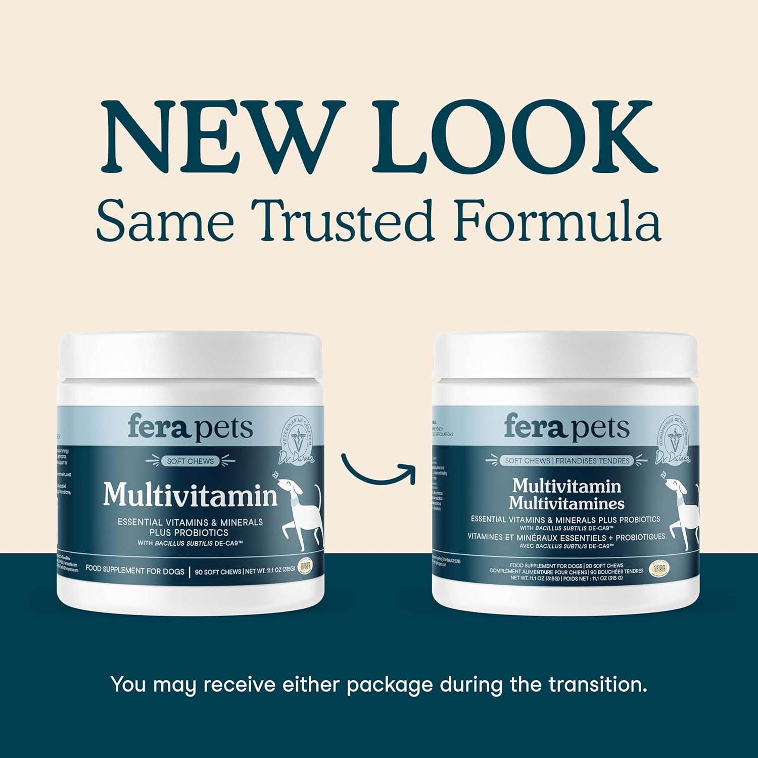 Fera Pets Dog Multivitamin Chews with Glucosamine and Probiotics – Essential Dog Vitamins & Minerals – Promotes Healthy Digestion & Joints – Boosts Skin & Coat Health with Omega-3s – 90 Soft Chews
