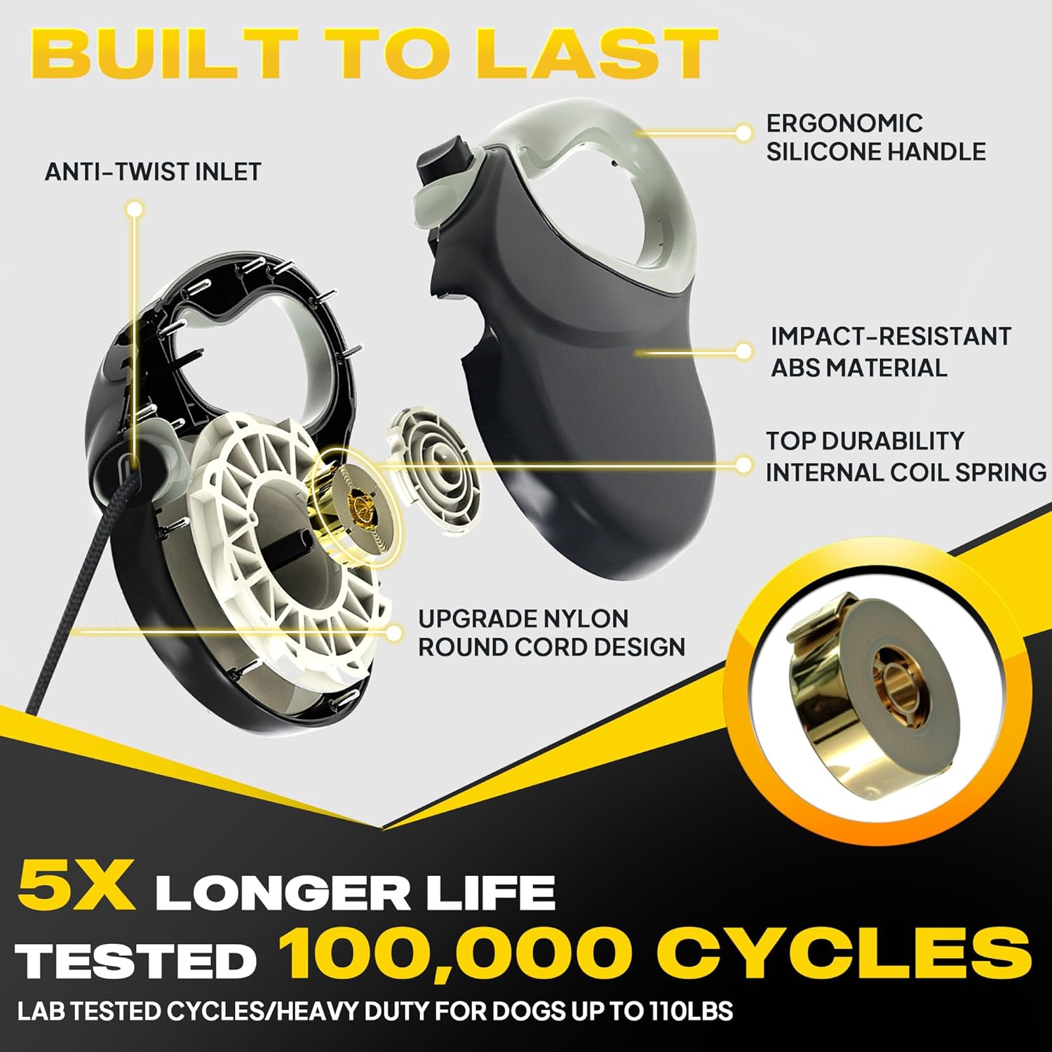 Fida Upgraded Retractable Dog Leash 30ft, Heavy Duty Pet Walking Leash for Medium/Large Breed up to 110 lbs, 360° Tangle-Free Long Retract Dog Lead, Soft Grip, One-Hand Brake, Black