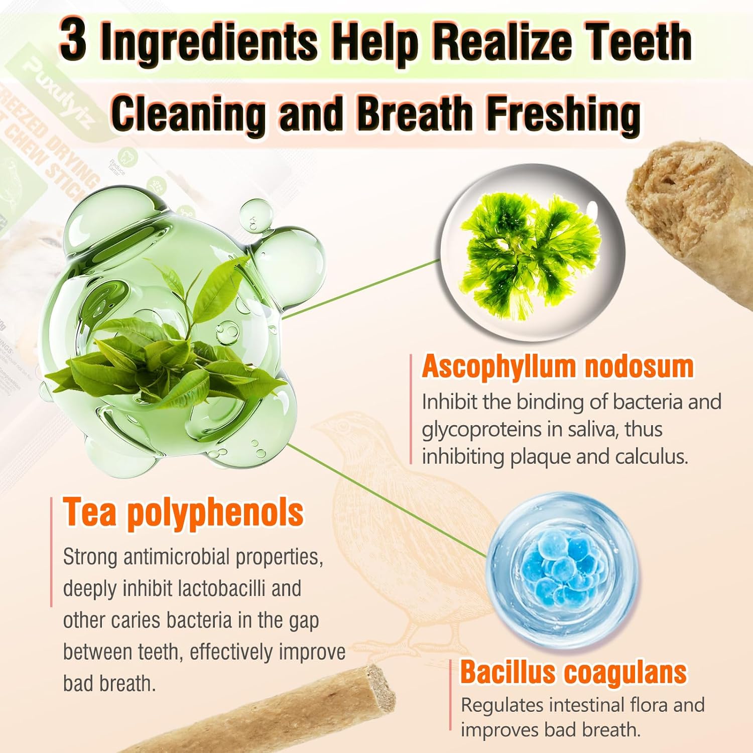 Freezed Drying 50g Cat Chew Sticks Quail Flavor, Cat Teething Sticks for Teeth Cleaning Dental Care, Cats Chew Toys for Fresh Breath