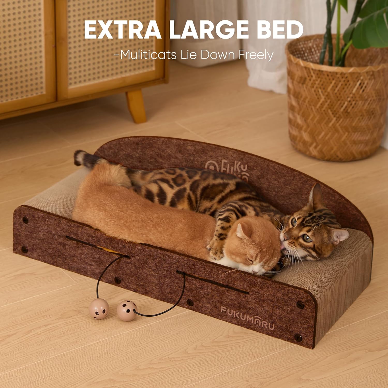 FUKUMARU 26 Inch Cat Scratcher Cardboard Lounge Bed, Durable Cat Scratcher Extra Large Lounger, 2 Reversible Cat Scratching Pads Refill for Indoor Cats, Cat Scratch Bed Cardboard Toy, Caramel Color