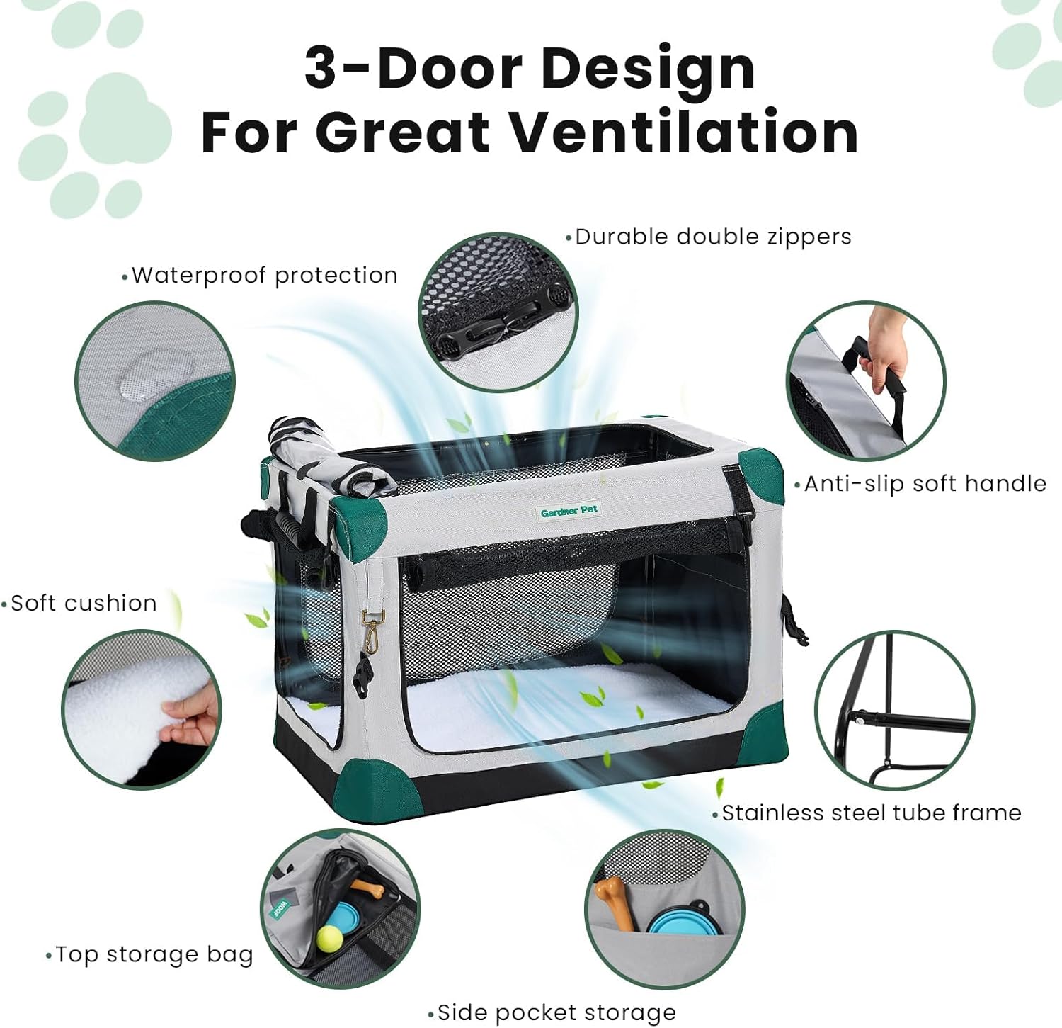 Gardner Pet Soft Collapsible Dog Crate – 36 Inch Portable Travel Dog Crate for Medium/Large Dogs Indoor & Outdoor, 3-Door Pet Crate with Durable Mesh Windows & Storage Bag, Grey