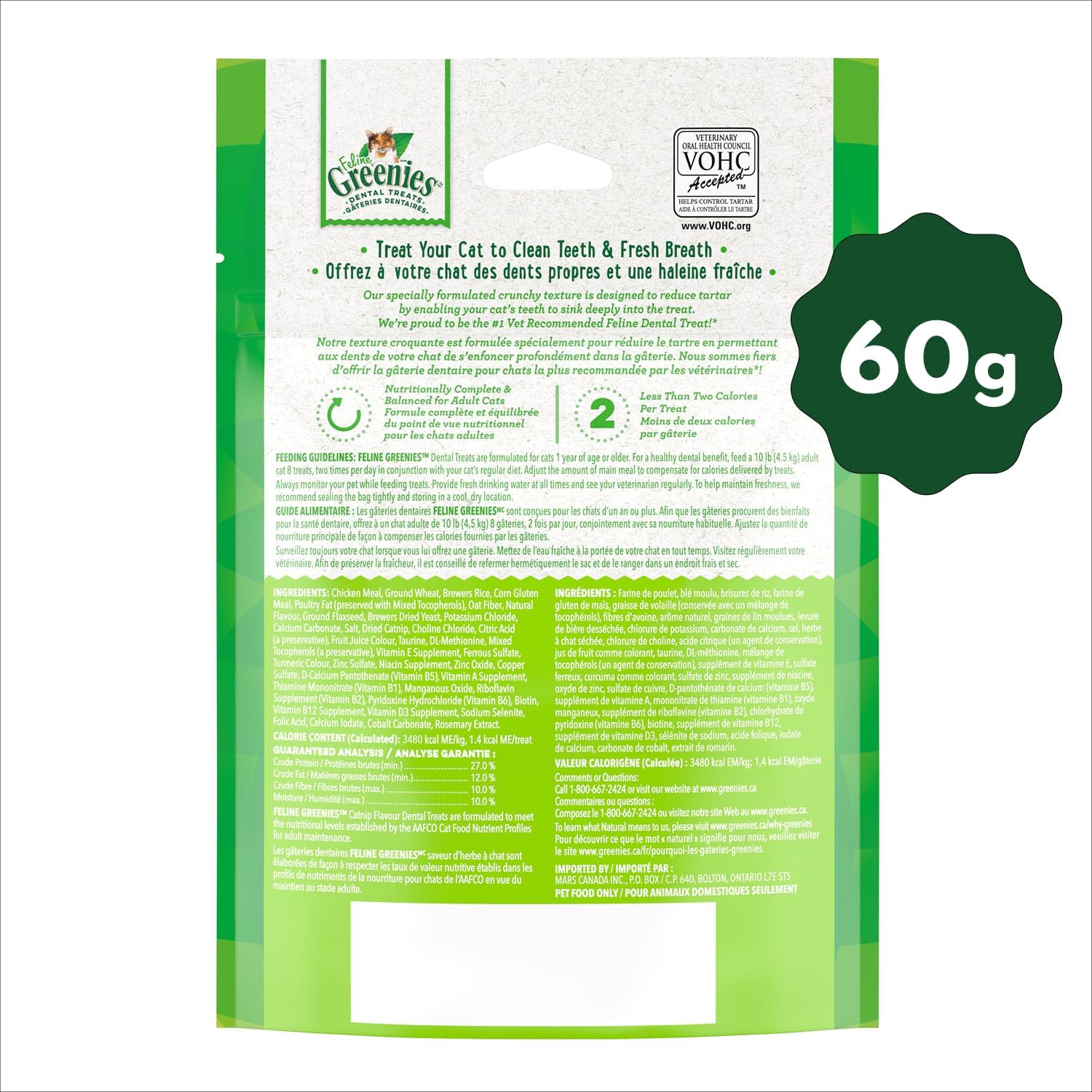 GREENIES Feline Cat Treats Adult Natural Dental Care, Catnip Flavour, 2.1oz. Pouch