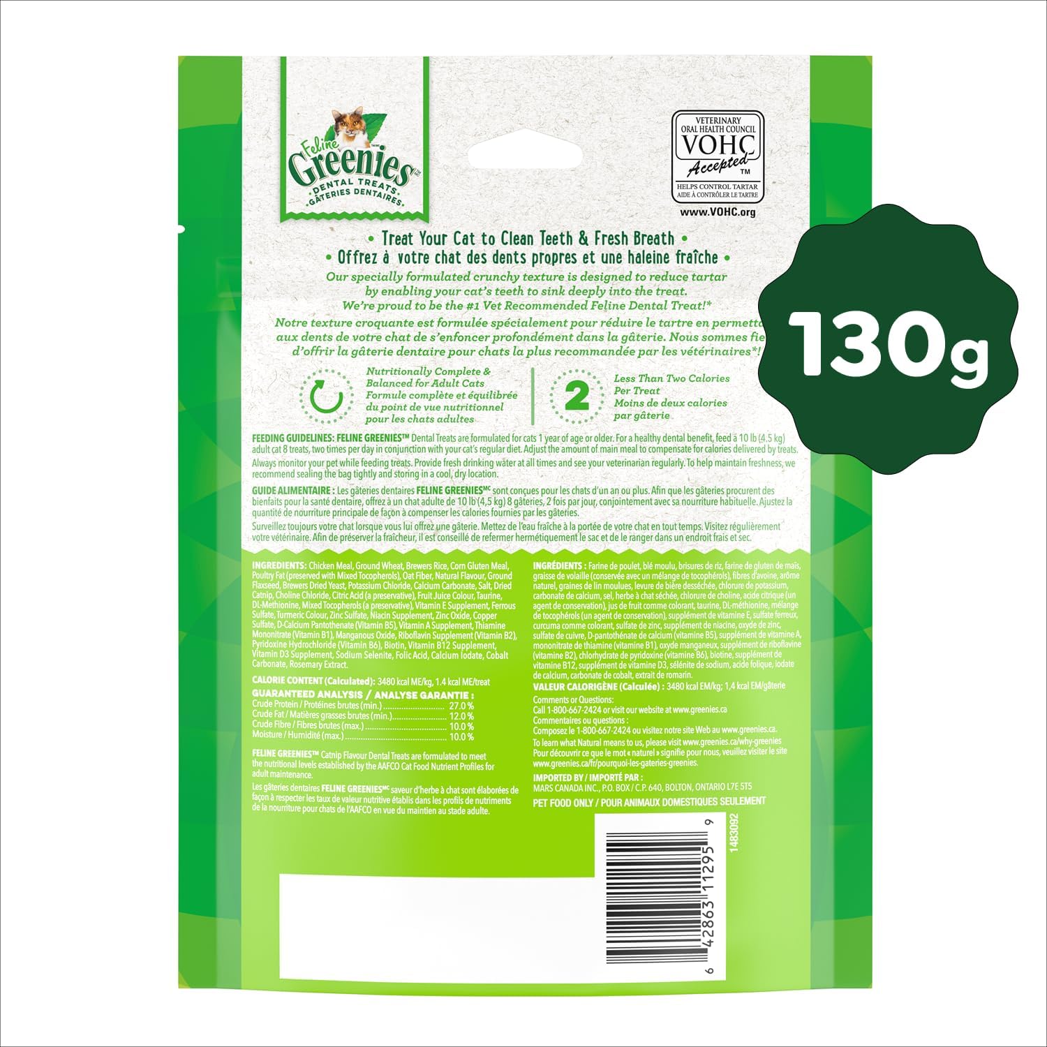 GREENIES Feline Cat Treats Adult Natural Dental Care, Catnip Flavour, 4.6oz. Pouch