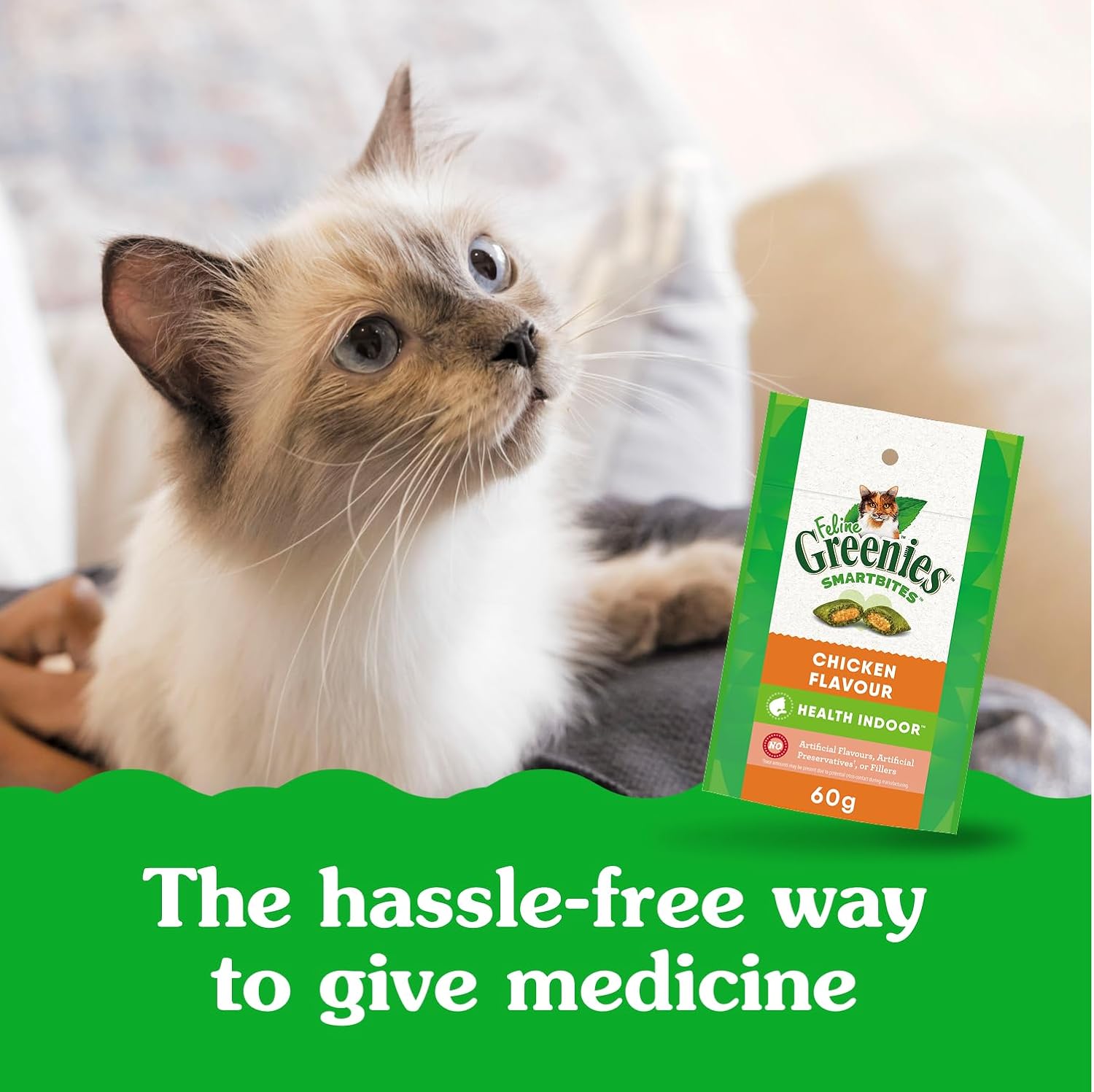 GREENIES Feline SMARTBITES Cat Treats Natural Dental Care, Chicken Flavour, 2.1oz Pouch