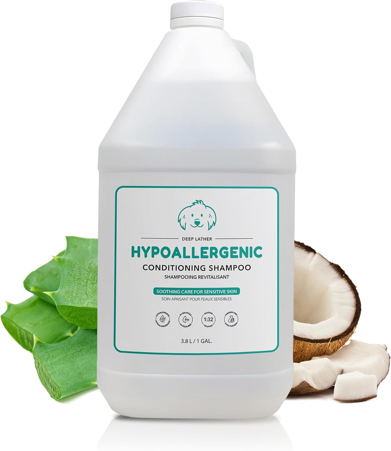 Hypoallergenic Dog Shampoo – Gentle and Soothing Formula for Sensitive & Itchy Skin – Ideal for Puppies, Dandruff, and Mange Treatment – Anti-Fungal & Dry Shampoo Formula | 1 Gallon