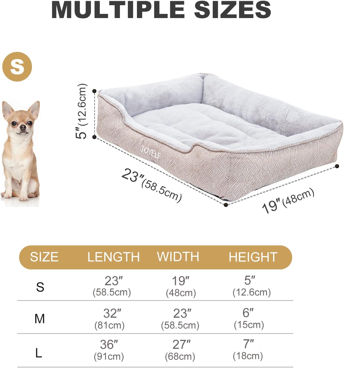 The JOYELF Dog Bed is available in a small rectangle size, suitable for small dogs and cats.
