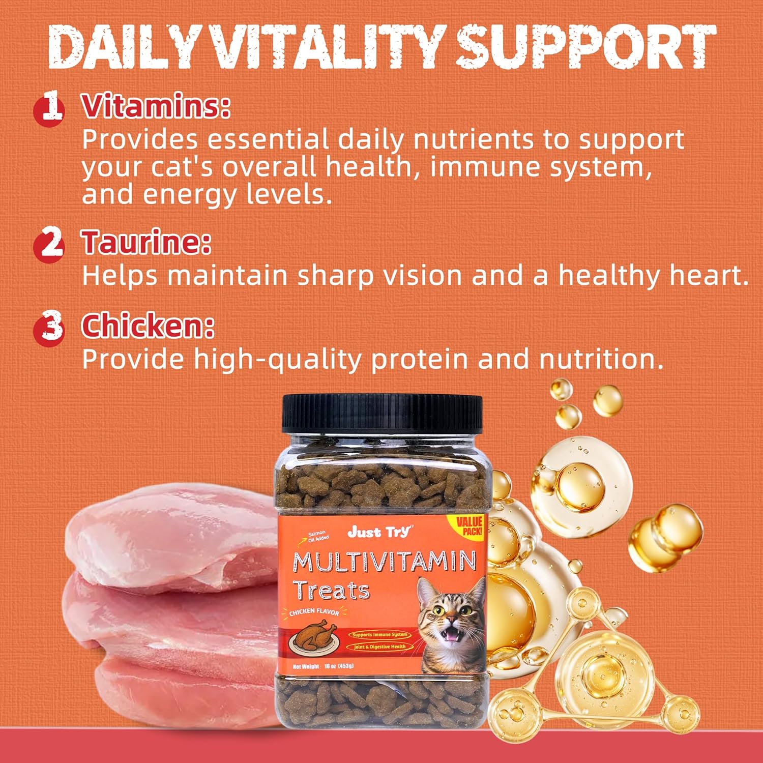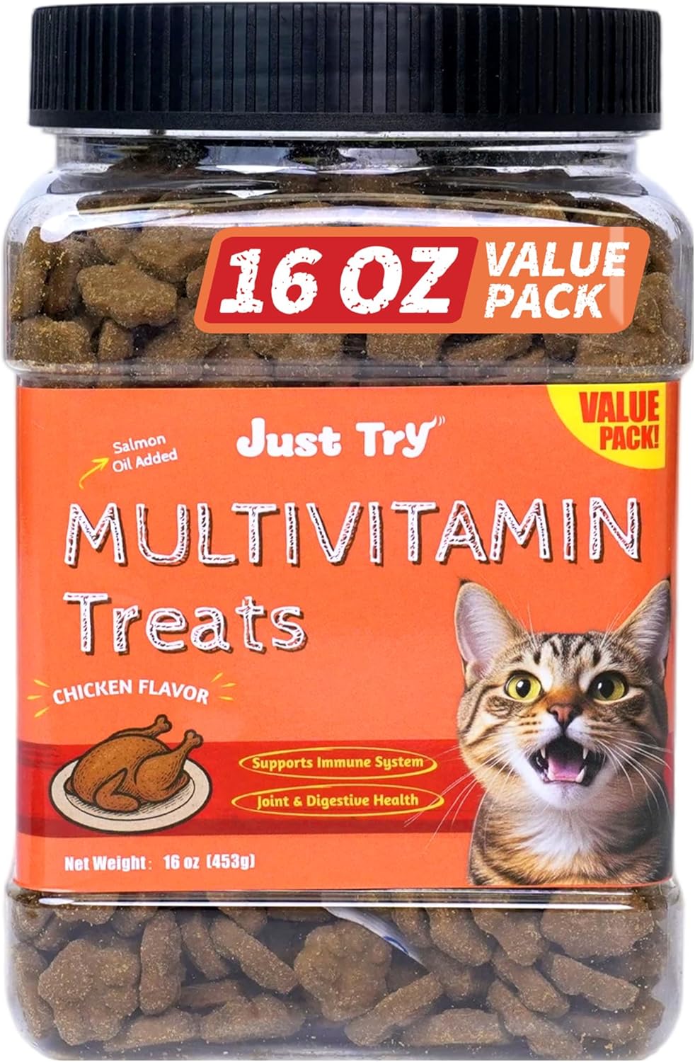 JUST TRY 16 OZ Daily Vitamins Cat Treats Multivitamin Boost Flavor Healthy Cat Snacks Training Biscuits Overall Health & Energy for Cats