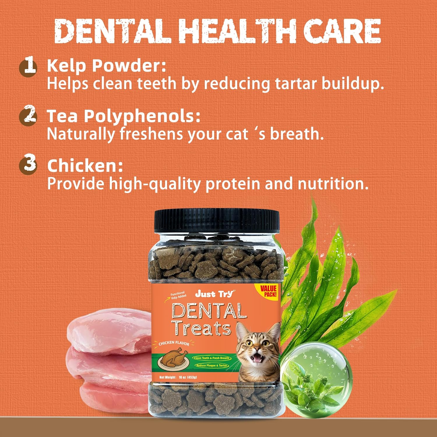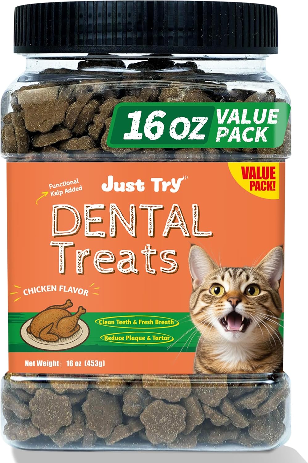 Just Try Dental Health Treats for Cats – Advanced Kelp Clean Teeth & Fresh Breath – Reduce Plaque & Tartar – Chicken Flavored Chews – 16 OZ