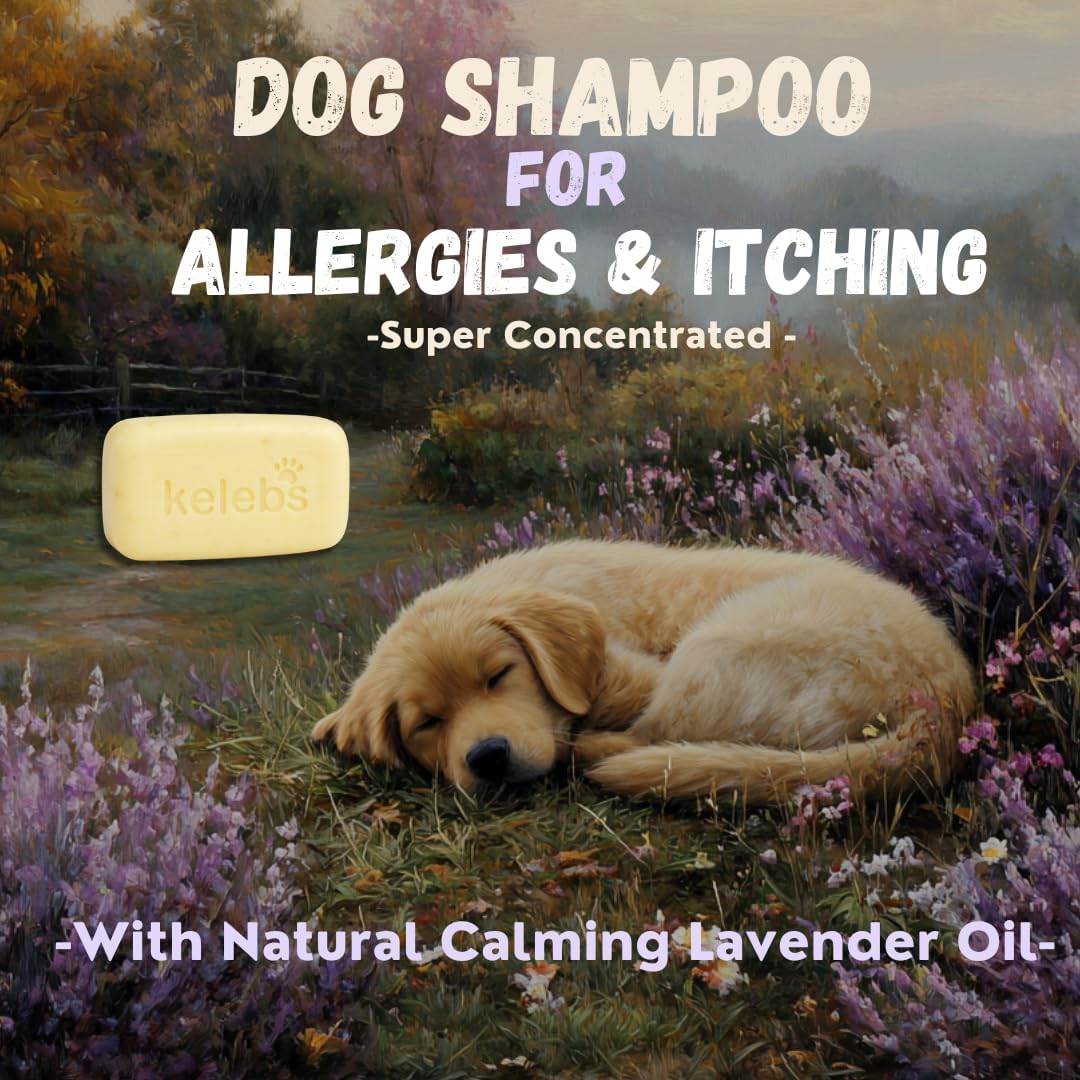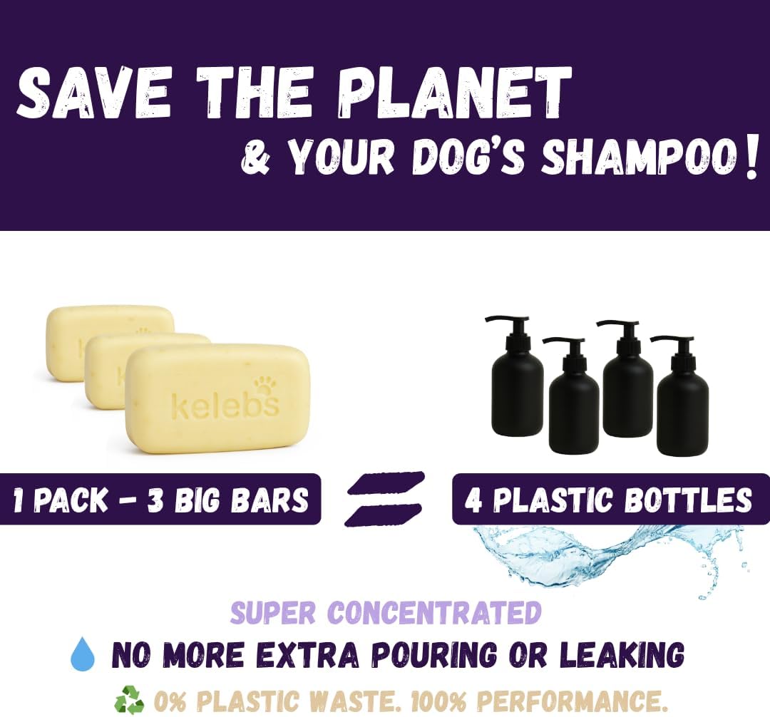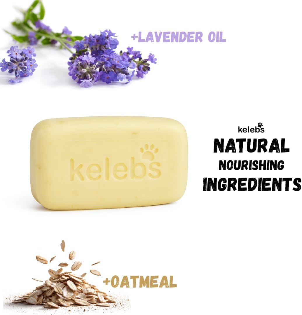Kelebs Natural Dog Shampoo Bar Anti-Itching | Puppy Shampoo | Calming Sensitive Skin with Lavender Essential Oils and Oatmeal | Zero Plastic | Vegan | 3PCS