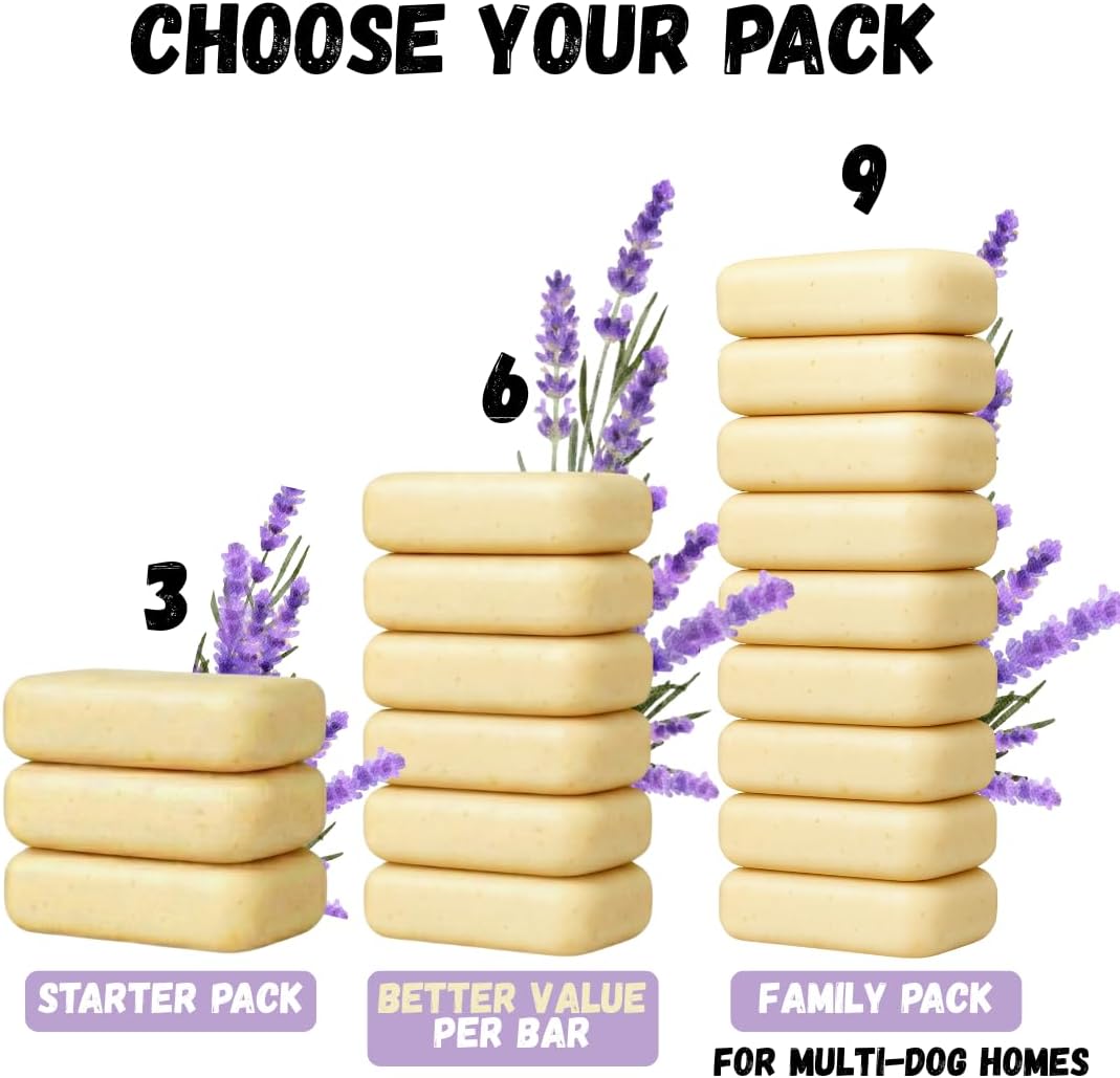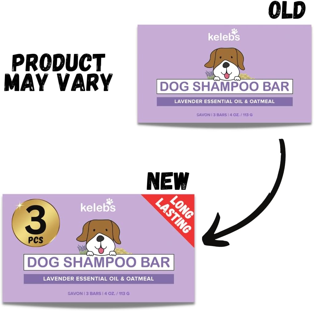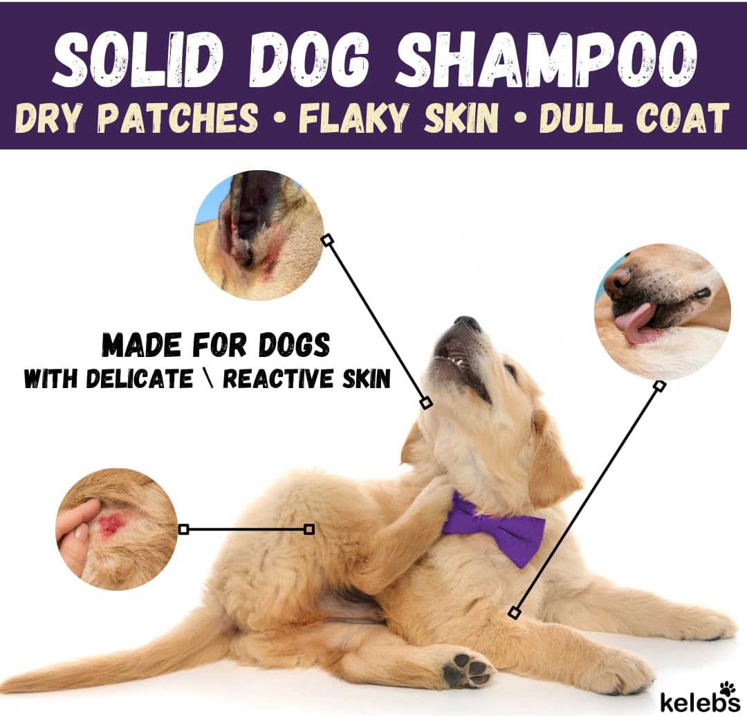 Kelebs Natural Dog Shampoo Bar Anti-Itching | Puppy Shampoo | Calming Sensitive Skin with Lavender Essential Oils and Oatmeal | Zero Plastic | Vegan | 3PCS
