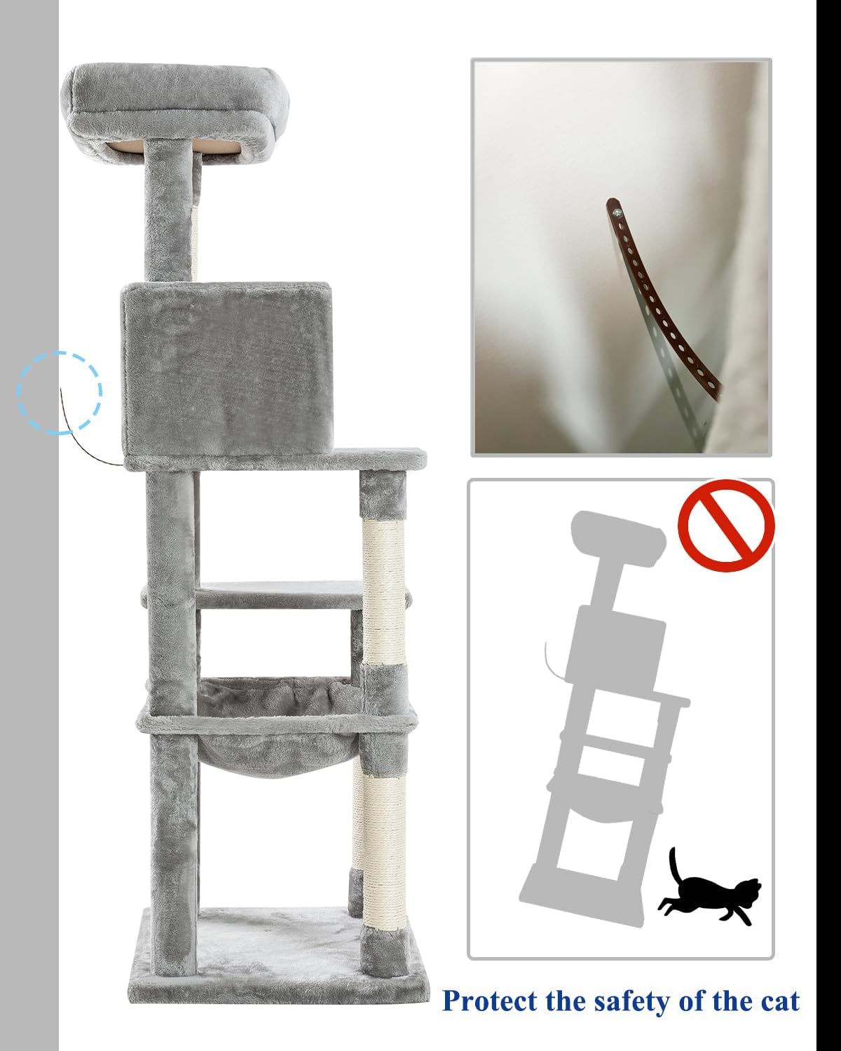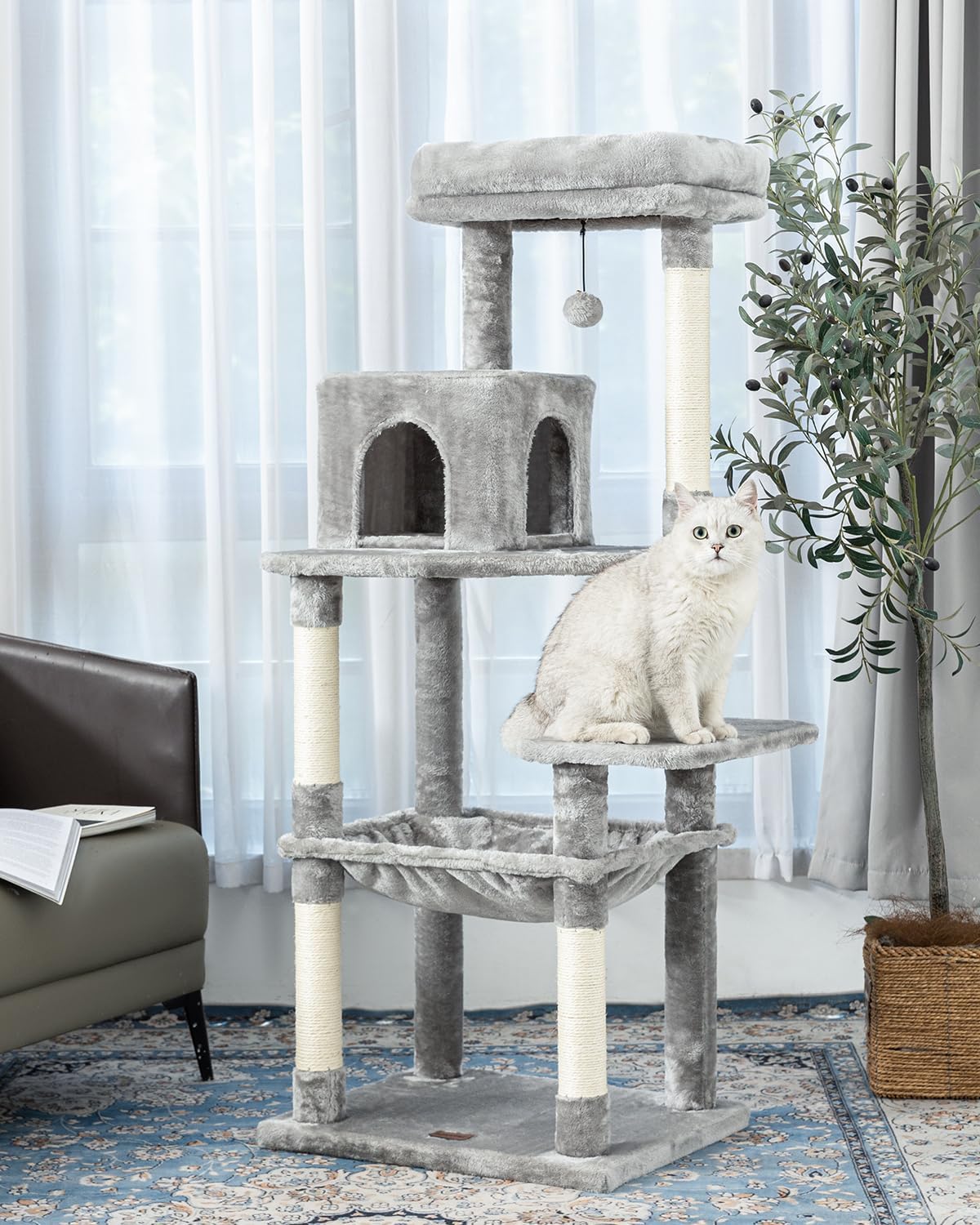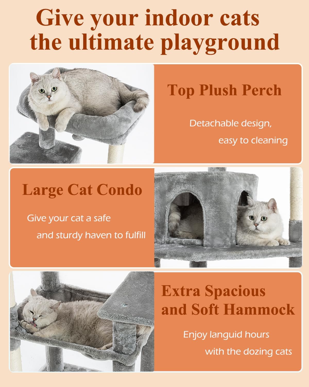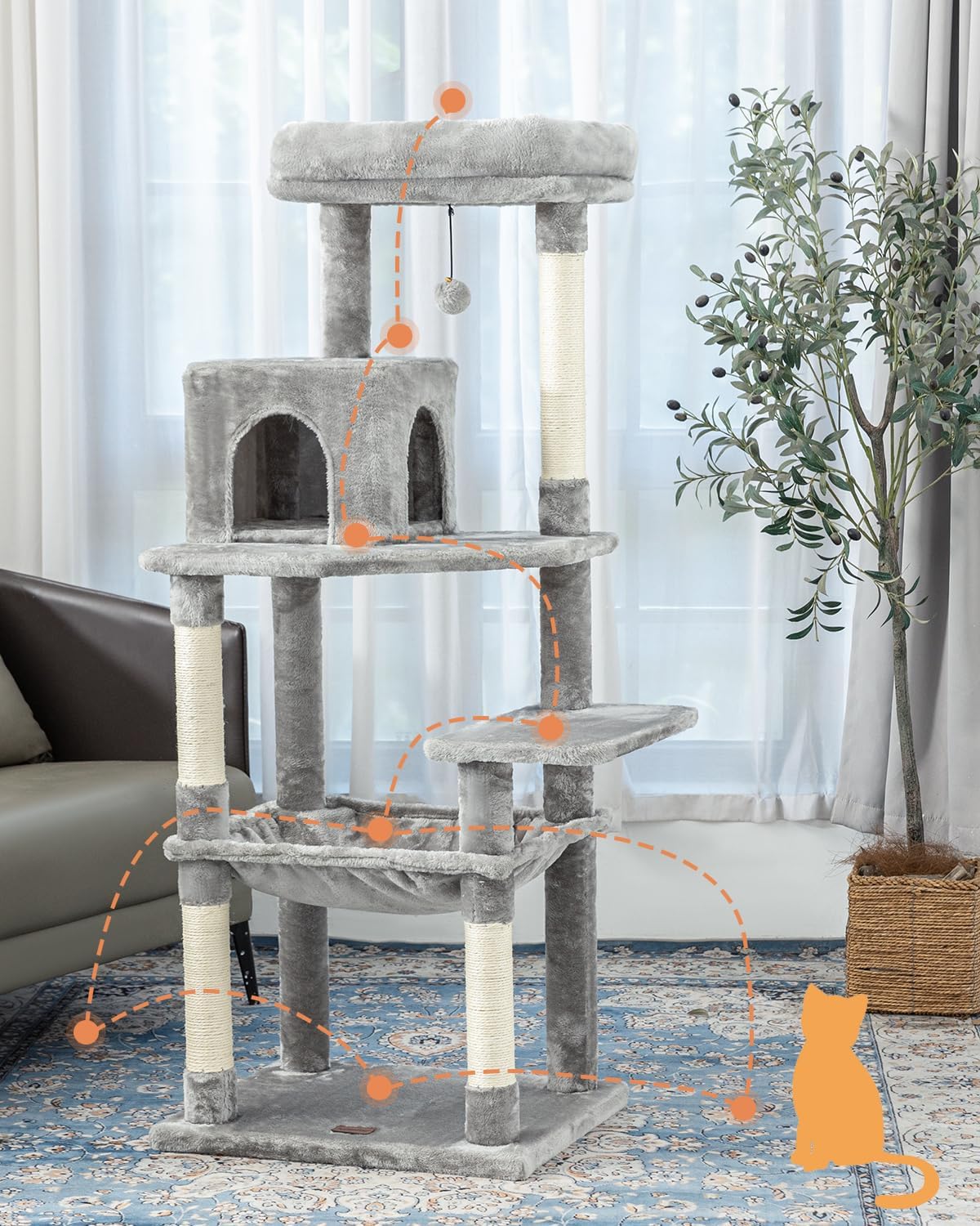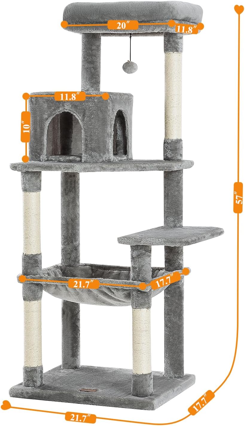 Kilodor 57 Inches Multi-Level Cat Tree Condo, Cat Tower with Sisal Scratching Post, Plush Perches, Hammock, Kitten Playhouse