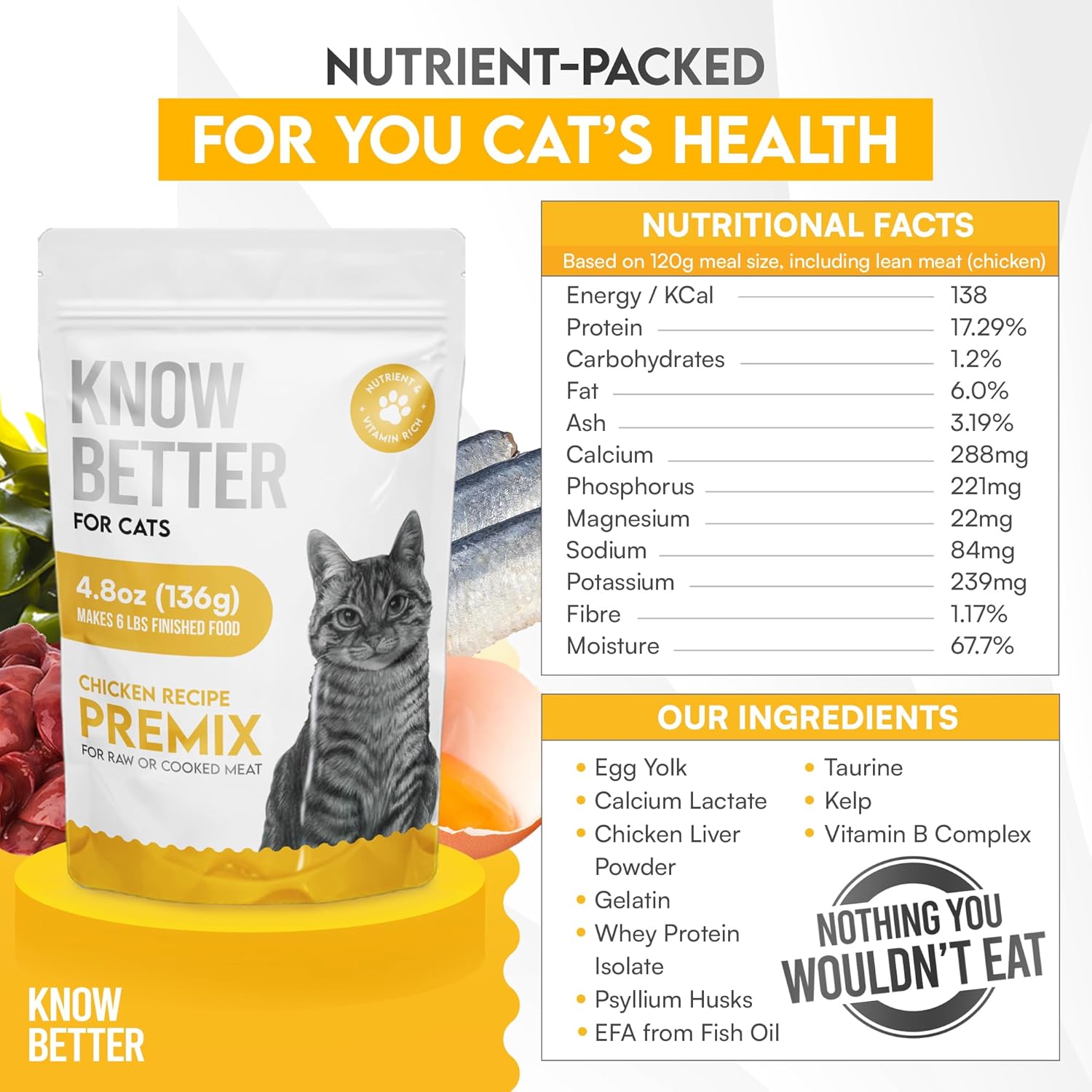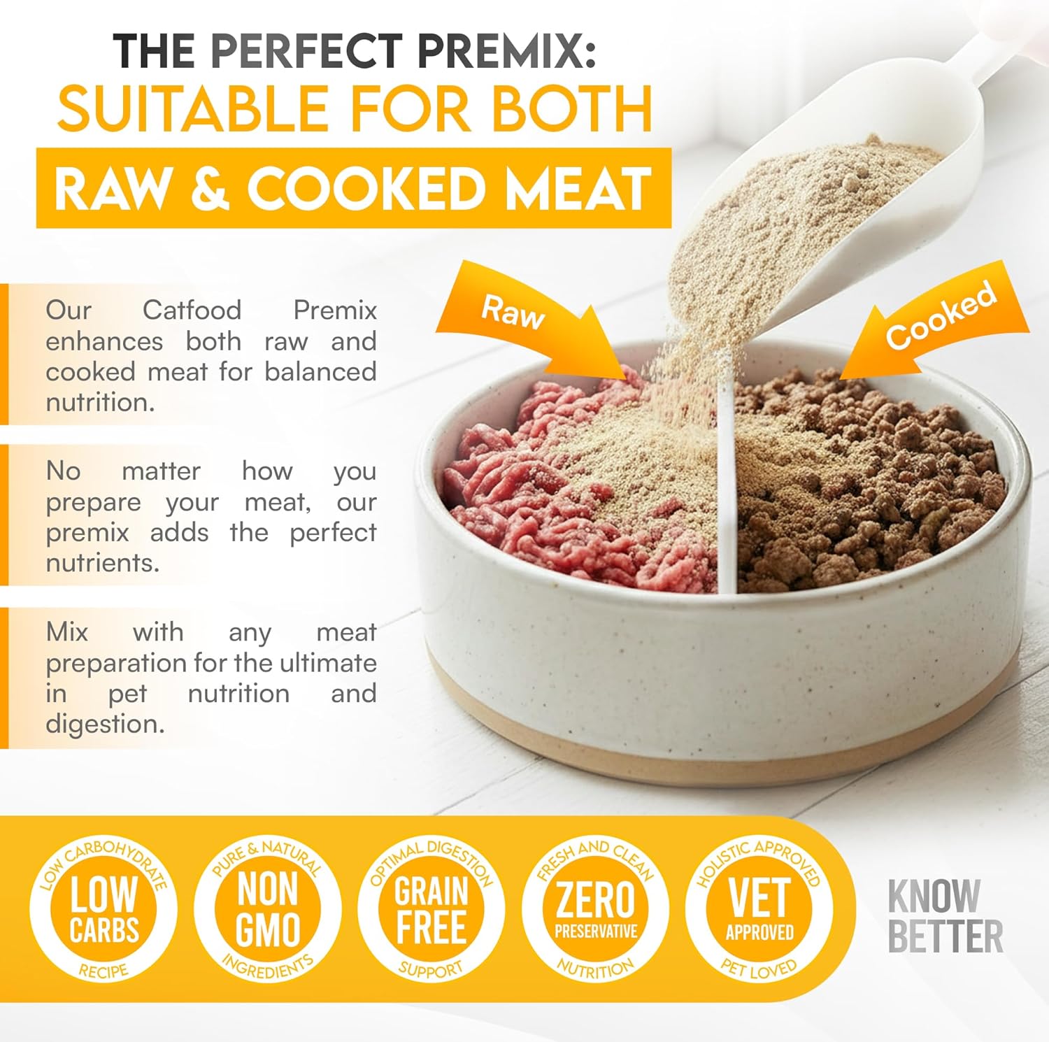 Know Better for Cats – Chicken Recipe, RAW or Cooked Cat Food Premix/Supplement for Making Homemade Cat Food, All Natural, Holistic Veterinarian Approved, Grain Free, No Artificial Additives
