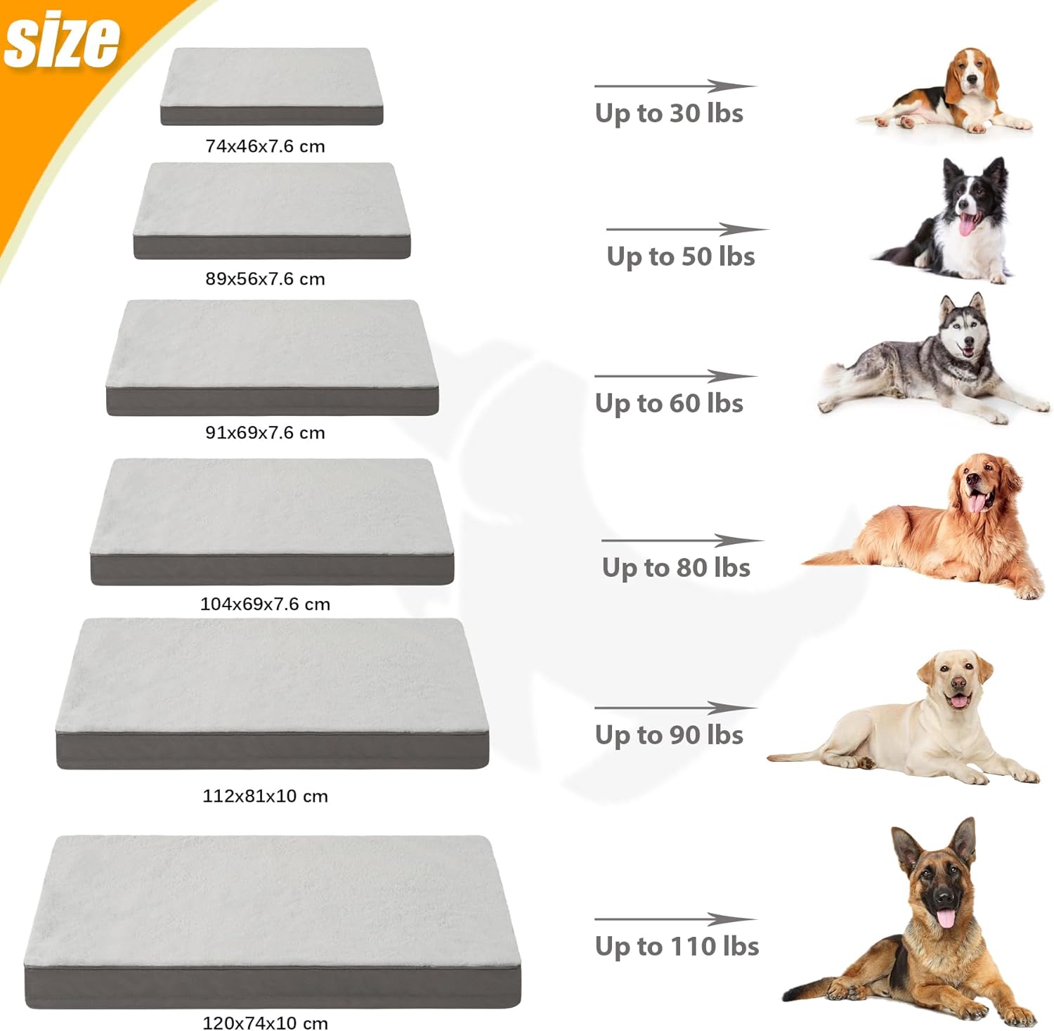 KSIIA Orthopedic Dog Bed – Waterproof Dog Crate Beds, Large Dog Bed, Plush and Washable with Egg Crate Foam & Removable Cover & Nonskid Bottom, 91 x 69 cm, Gray