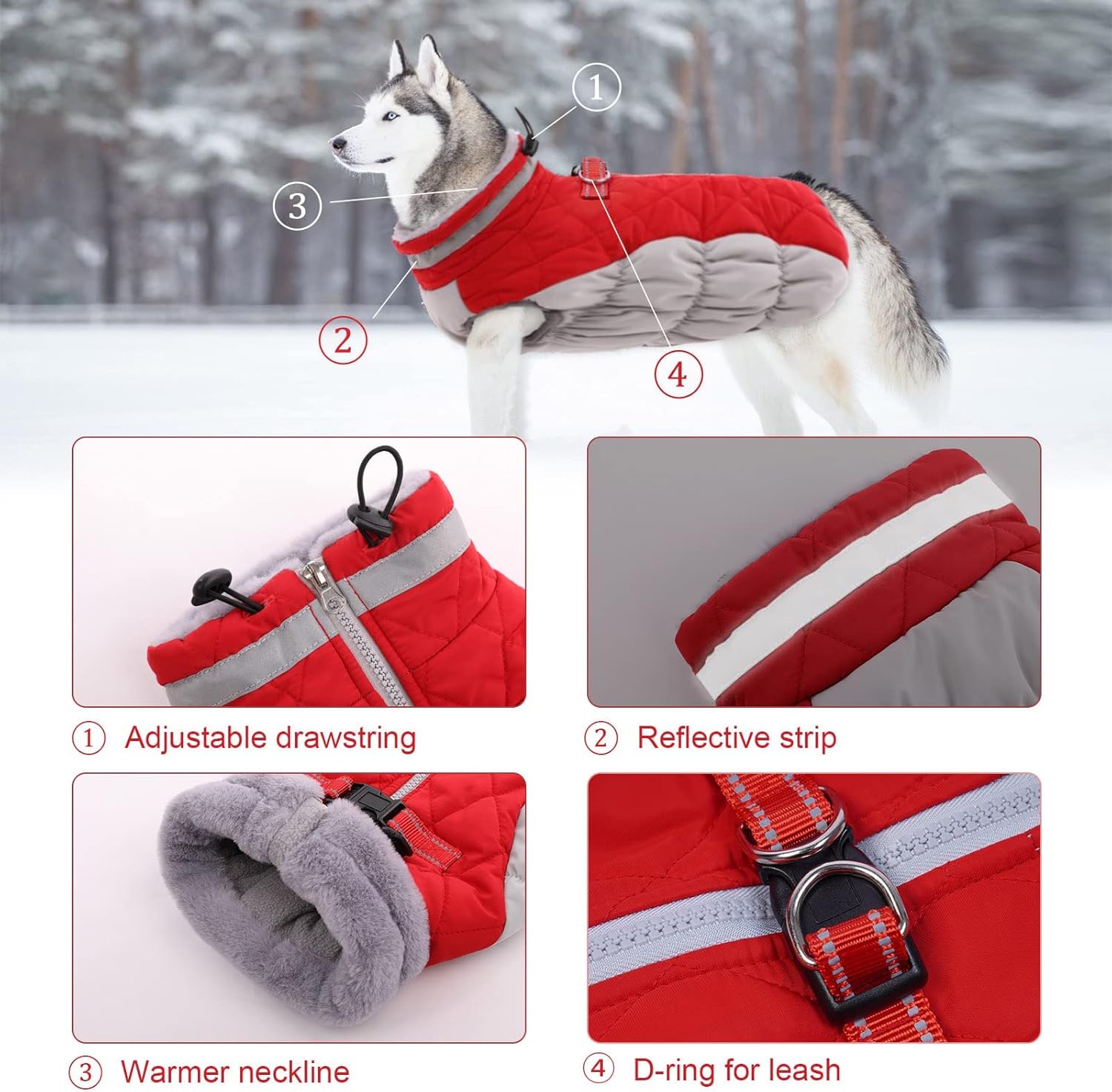 Lelepet Dog Coat Warm Dog Winter Coat Waterproof Dogs Jacket with Harness Built in Reflective Pet Fleece Vest Zip-Up Cold Weather Coats for Large Dogs Turtleneck & Windproof Coats Boxer Red XL