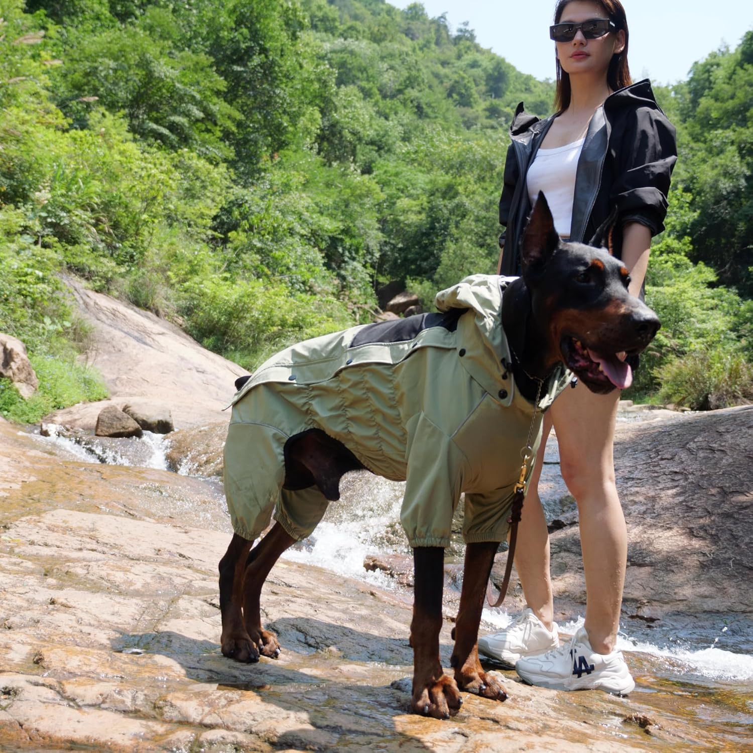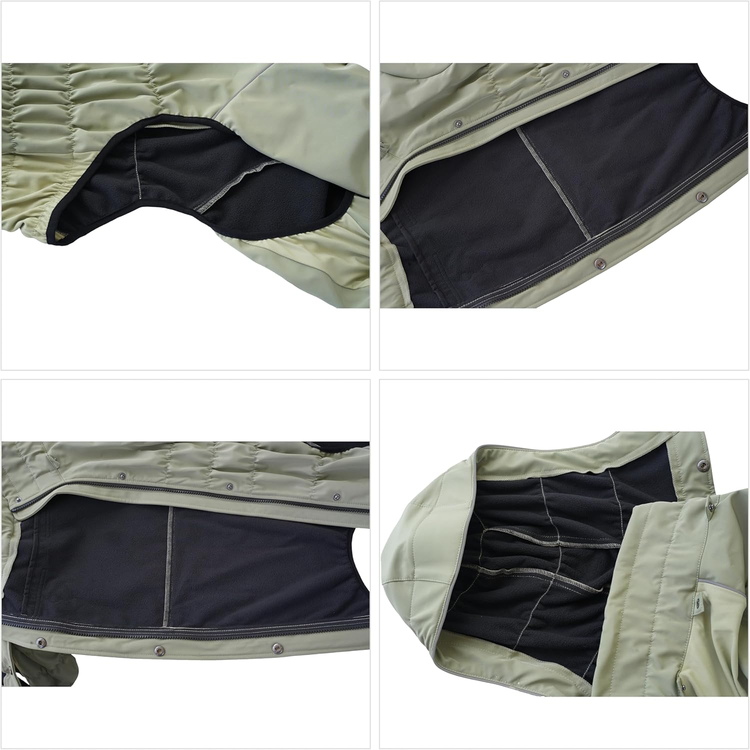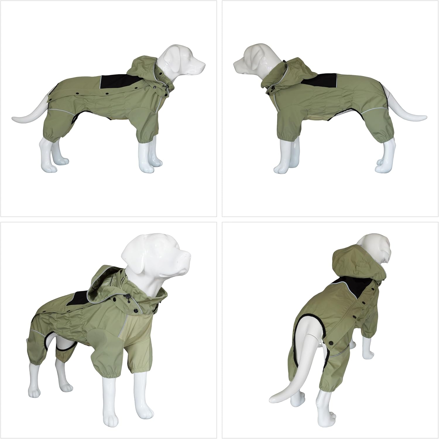 LOVELONGLONG Fleece-Lined Dog Raincoat with Removable Hood – Waterproof Winter Full Body Dog Jacket – Windproof Snowproof Cold-Weather Suit – Green-F L