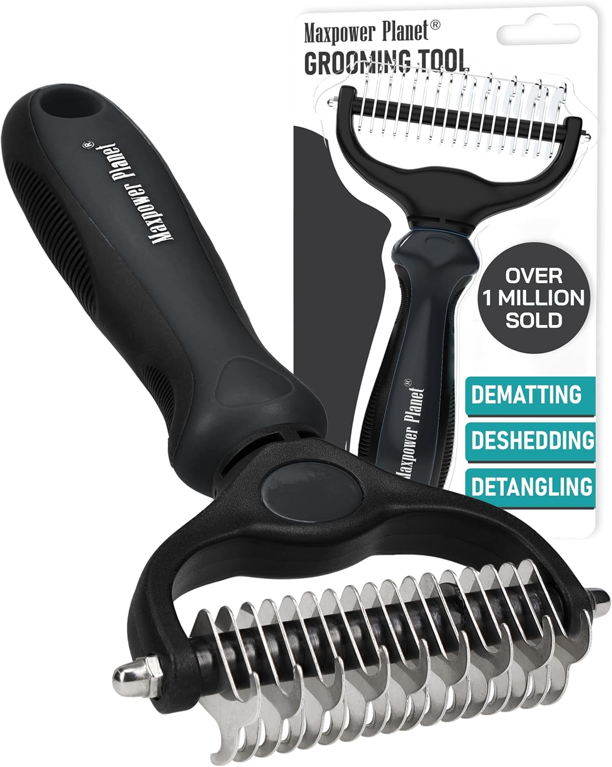 Maxpower Planet Pet Grooming Brush – Double Sided Shedding, Dematting – Undercoat Rake for Dogs – Dog Grooming Brush – Deshedding Brush for Dogs – Dog Brush, Cat Brush, Reduce Shedding by 95%, Black