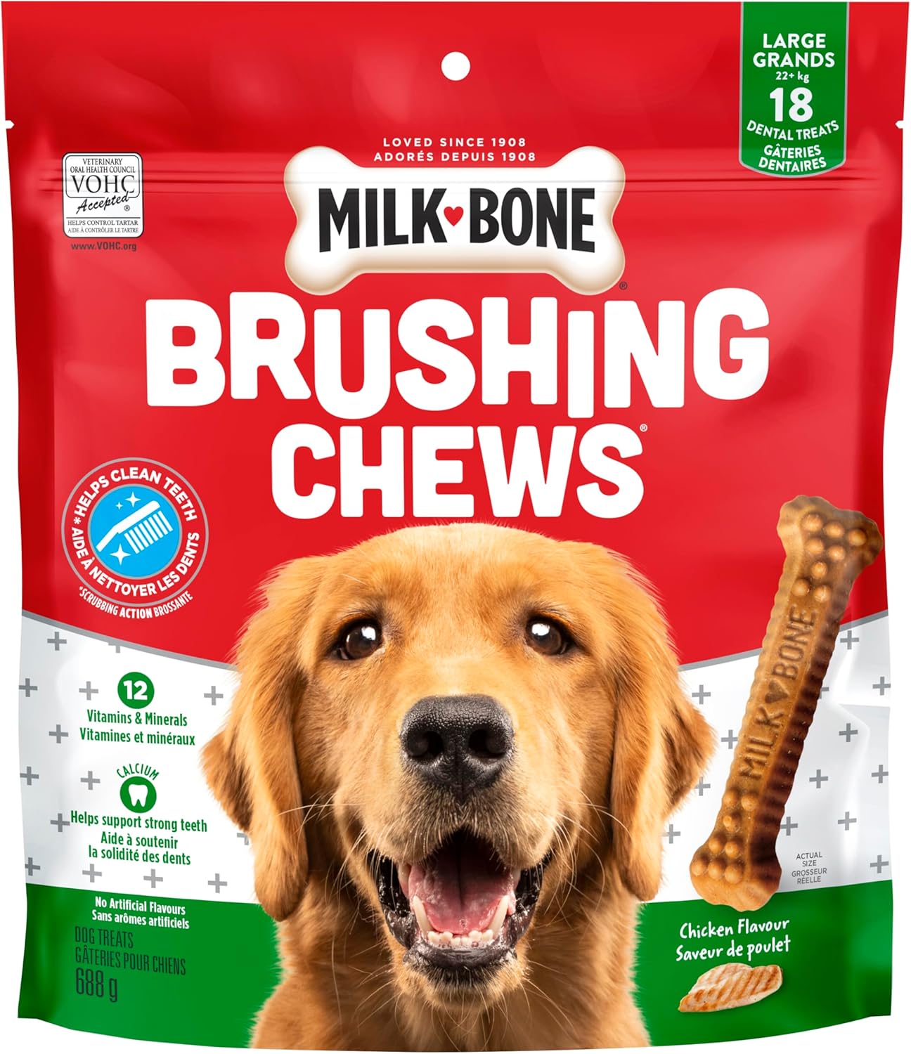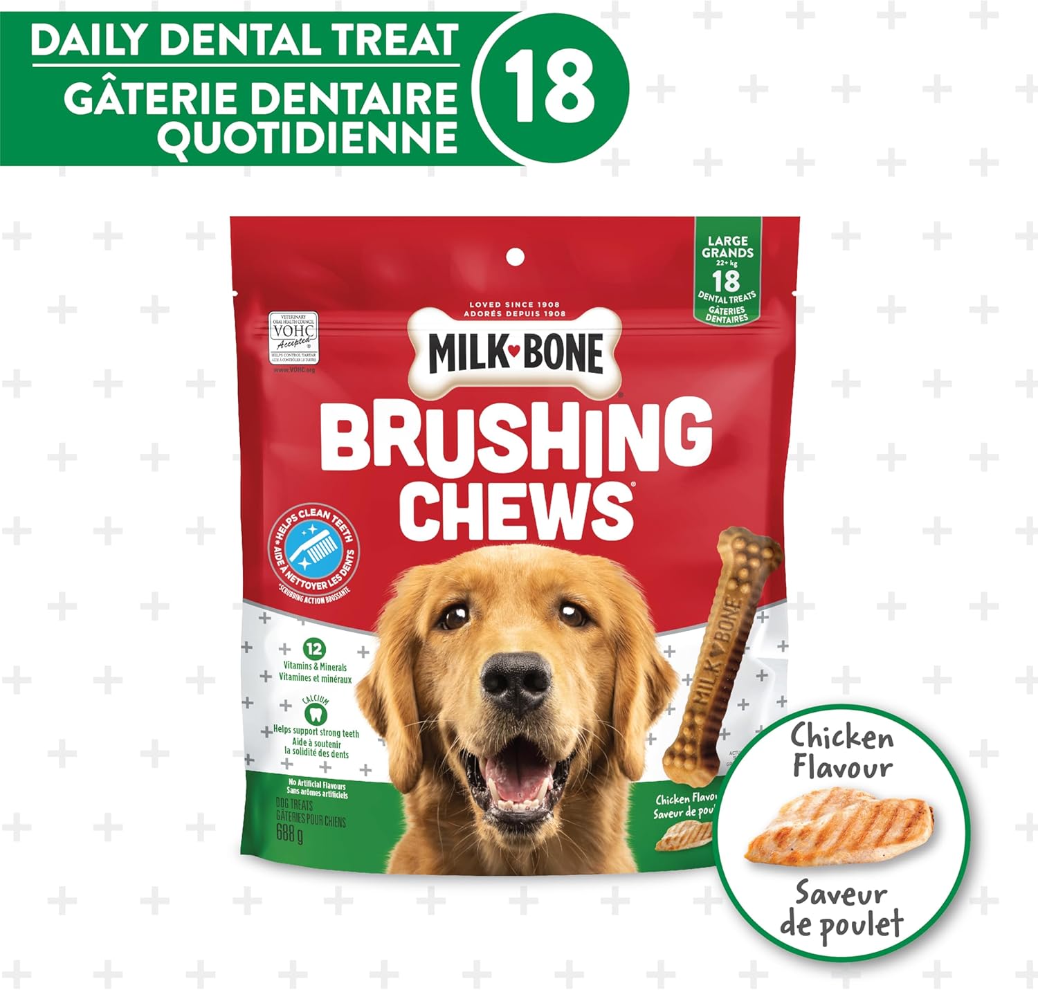 Milk-Bone Brushing Chews Dental Dog Treats, Chicken Flavour Dental Chew, Helps Clean Teeth and Reduce Bad Breath, For Large Dogs, 18 Treats (Pack of 1)