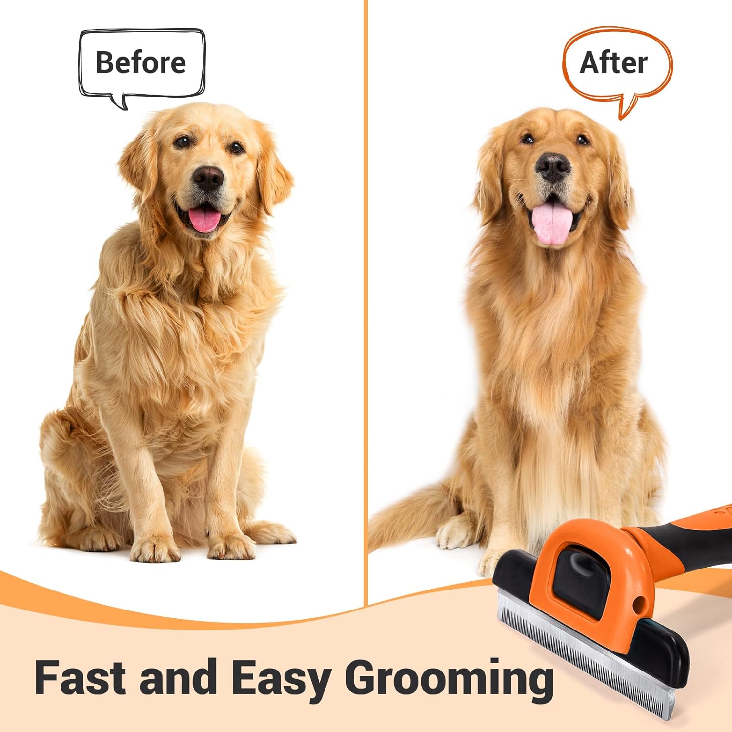 MIU COLOR Pet Grooming Brush, Deshedding Tool for Dogs & Cats, Effectively Reduces Shedding by up to 95% for Short Medium and Long Pet Hair, Orange