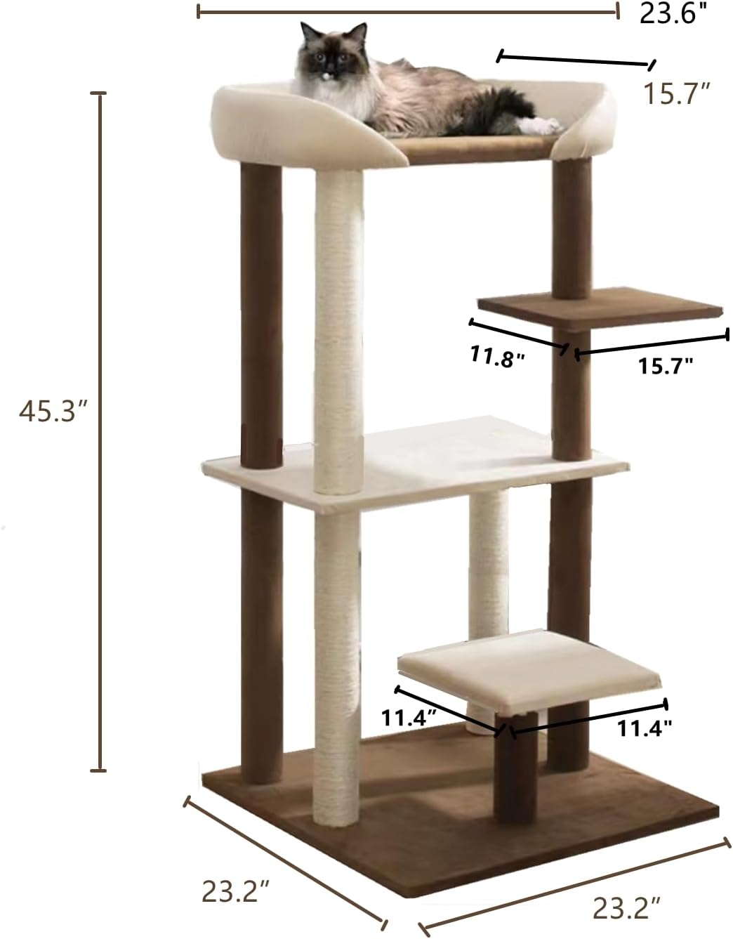 Modern Cat Tree Tower with Extra Large Platform Perch Bed for Maine Coon and Big Couch Sofa for Multiple Cats