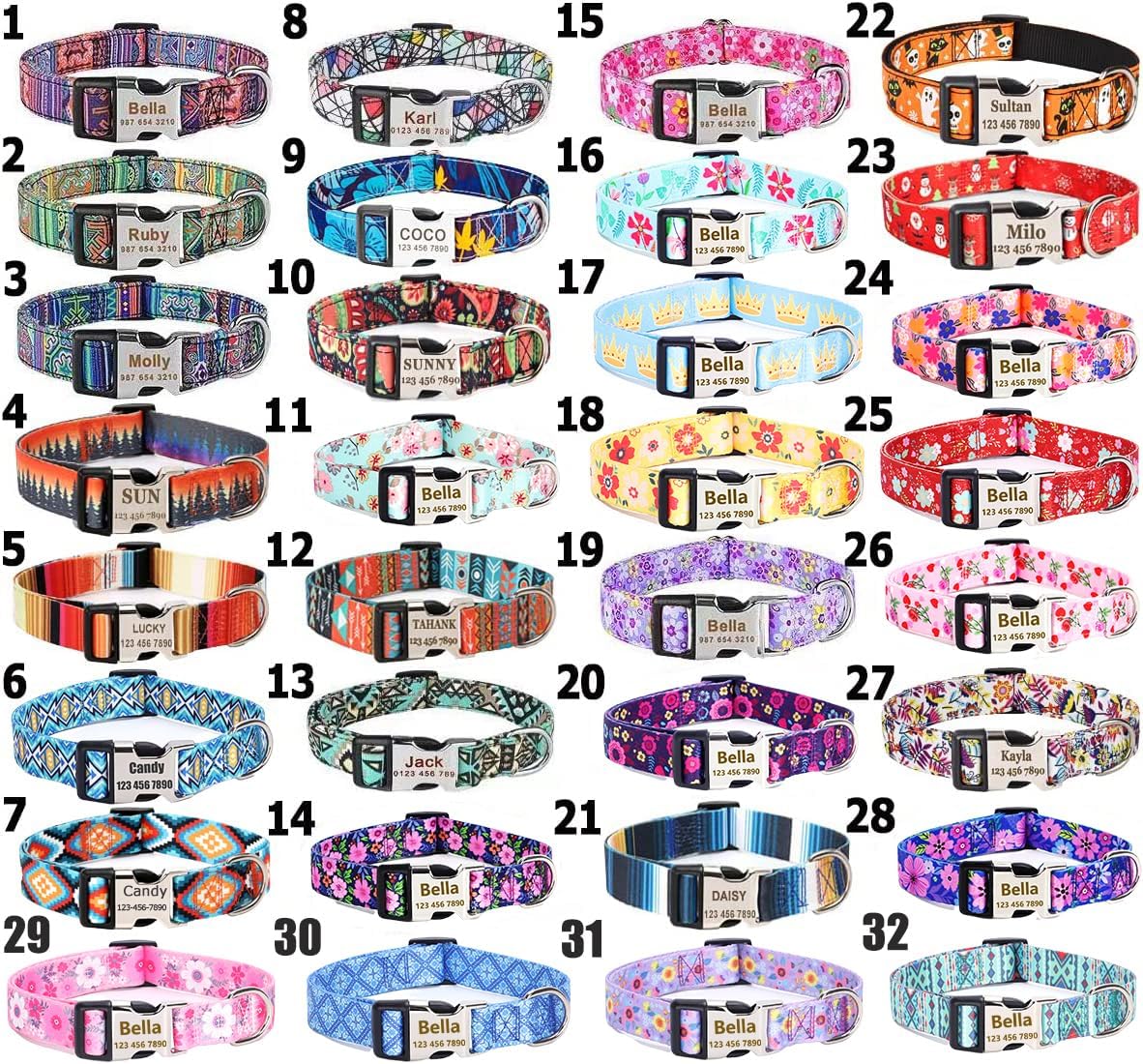 Moonpet Personalized Custom Customized Dog Collar with Engraved ID Tag Dog Name and Phone Number/Heavy Duty Adjustable Dog Collars for Puppy X-Small Small Medium Large X-Large Boy Girl Dogs