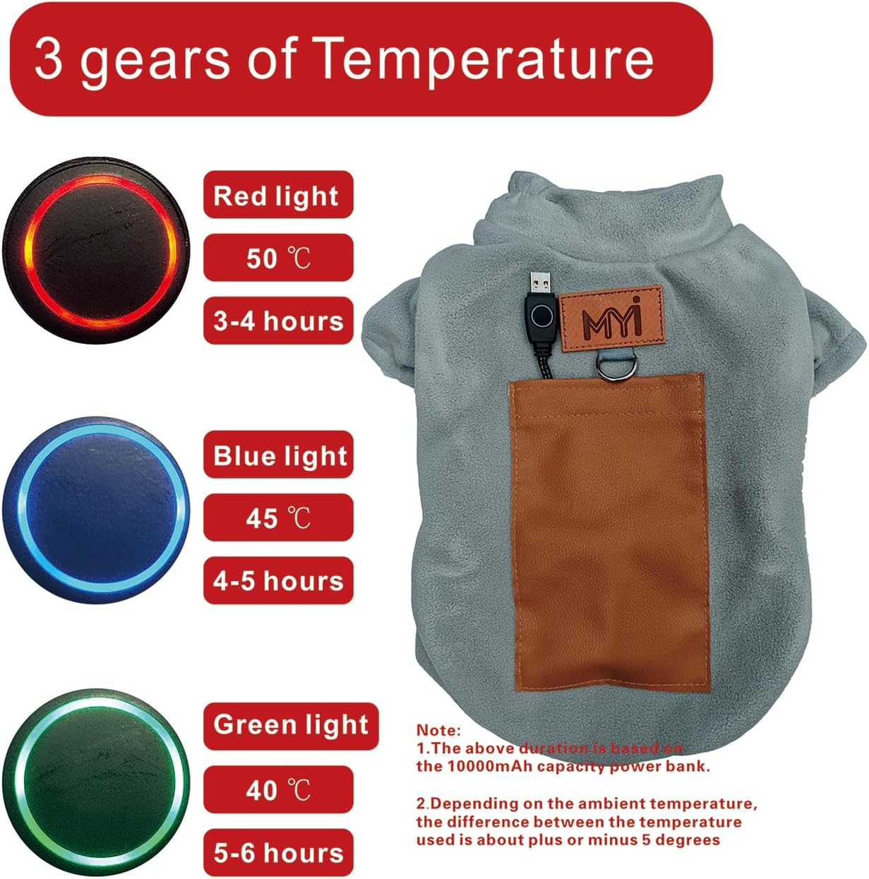 MYI Winter Heated Dog Electric Warm Coat Clothes for Small Medium Large Dogs Outside/Inside Cold Weather Jacket pet Vest Gray XL(NOT Included Batteries)