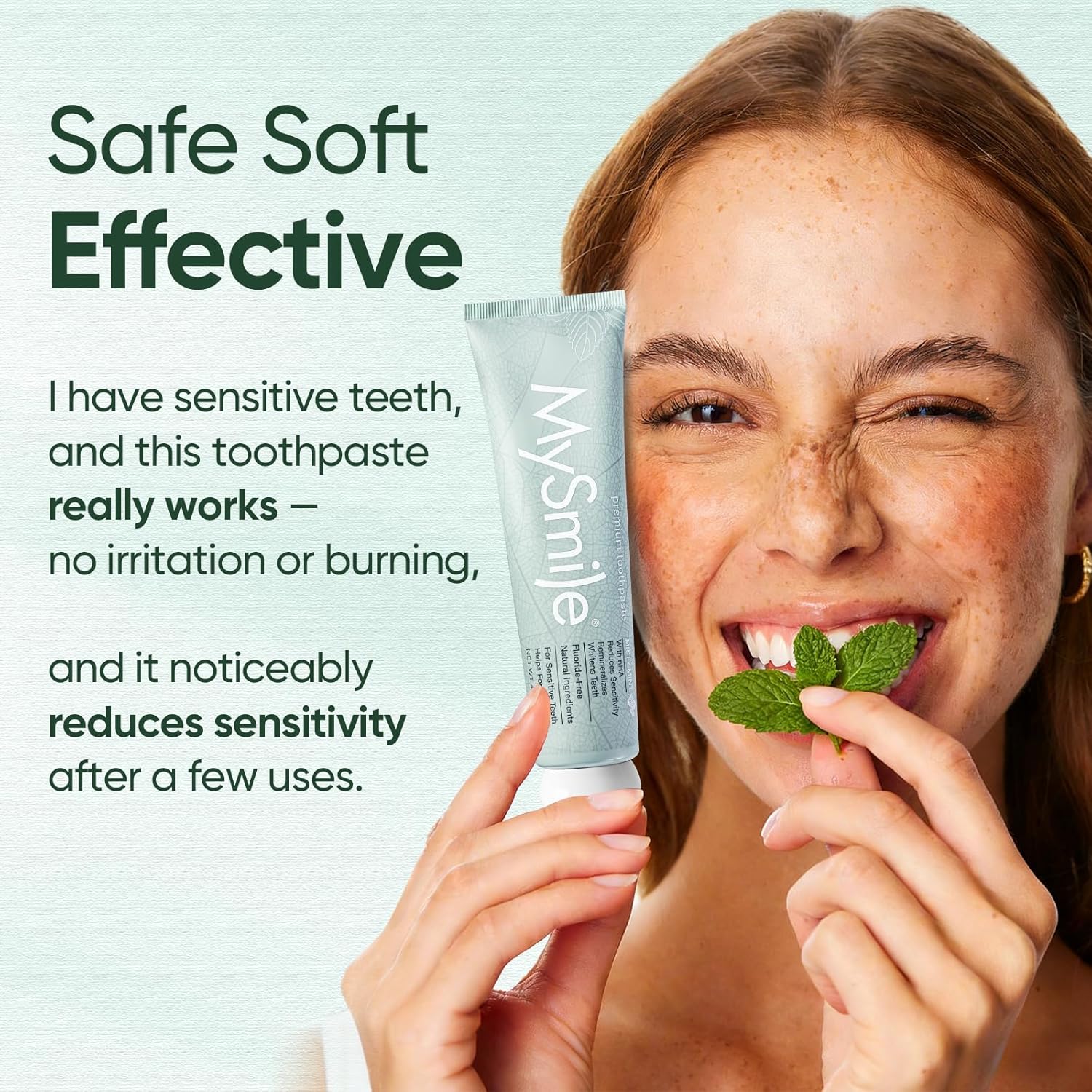 MySmile Fluoride Free Nano Hydroxyapatite Toothpaste for Sensitive Teeth, Strengthens Enamel, Remineralizes & Whitens Teeth, Freshens Breath for Adults, SLS Free, Natural Misty Mint, 4.2 oz