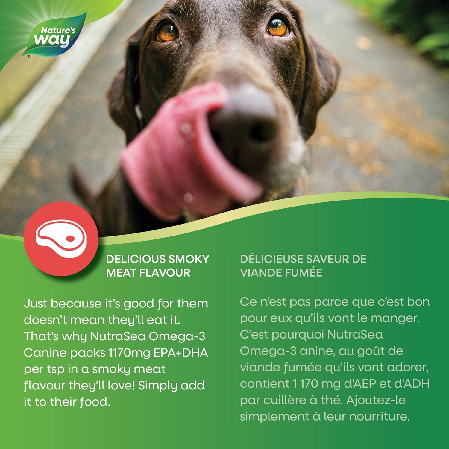 Nature’s Way NutraSea Omega-3 Canine Supplement for Dogs – Helps Support Dogs’ Skin, Coat, Muscles, Joints, Heart & Brain – 1170 mg of EPA + DHA – Smoky Meat Flavour, 500 mL
