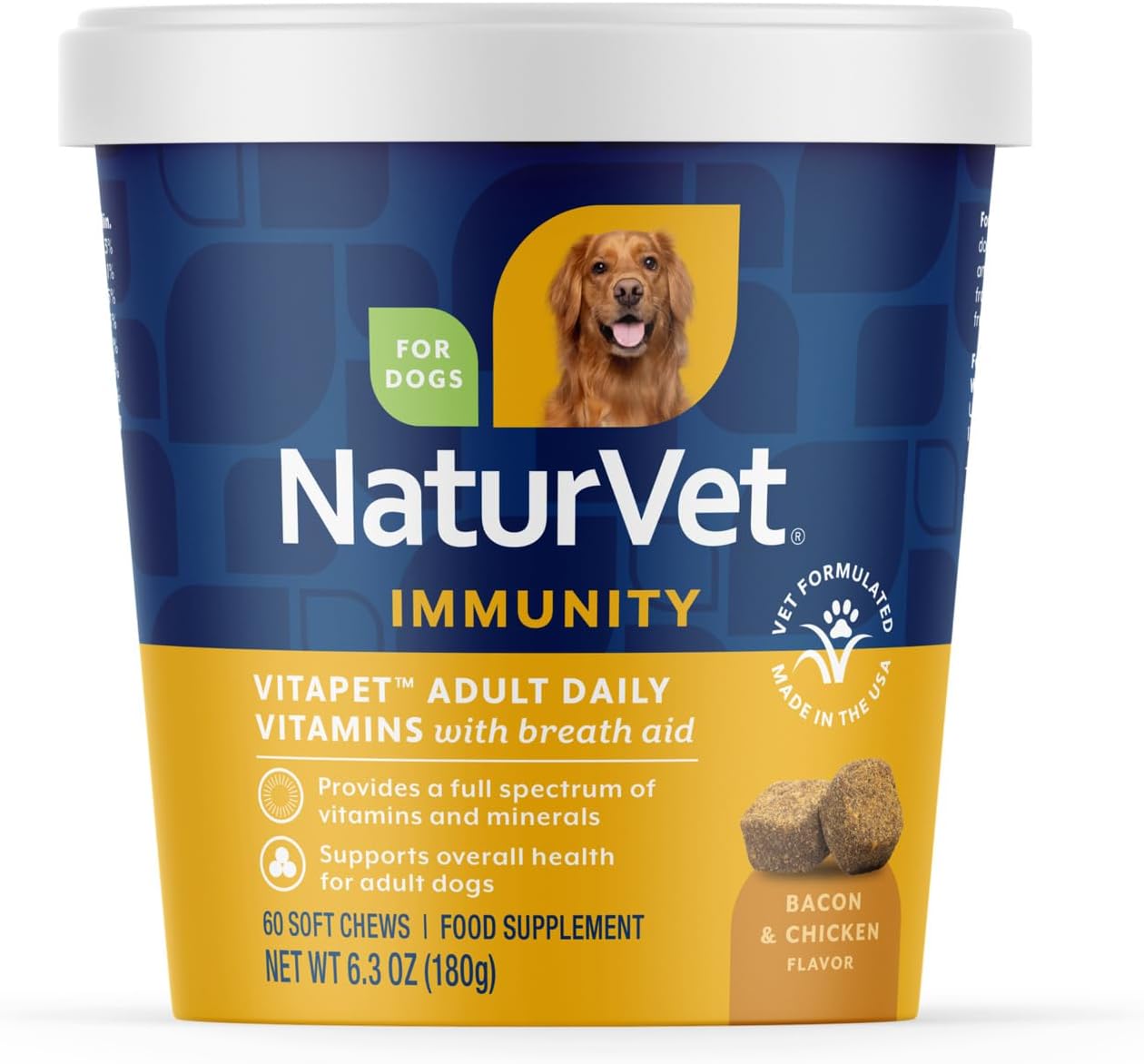 NaturVet VitaPet Adult Daily Vitamins Plus Breath Aid for Adult Dogs, 60 ct Soft Chews , Made in USA