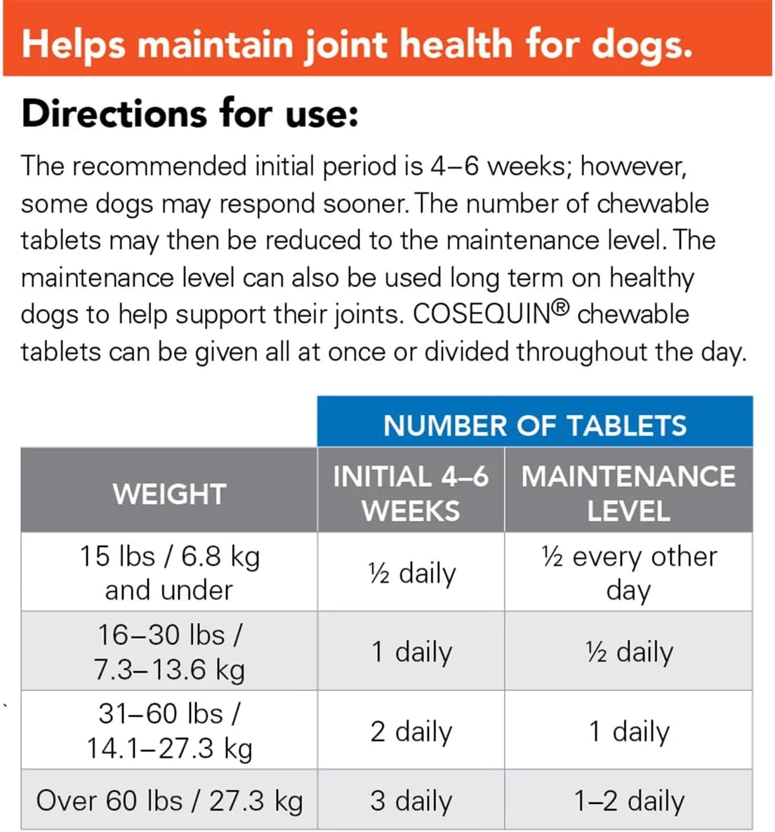 These tablets are suitable for dogs of all sizes and can be beneficial for active or older dogs.