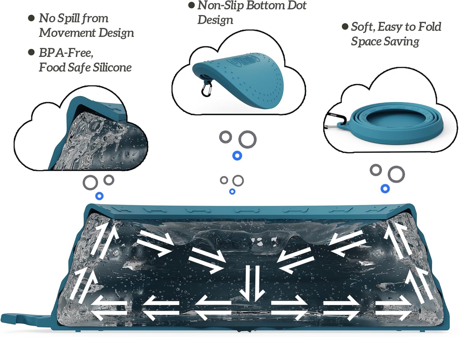 OHMO Spill Proof Collapsible Dog Bowl 700ml for Cars, No Water Splash Anti Tip Over Portable Bowls for Dog Travel, Pet Essentials for Road Trips, Cat Travel Accessories