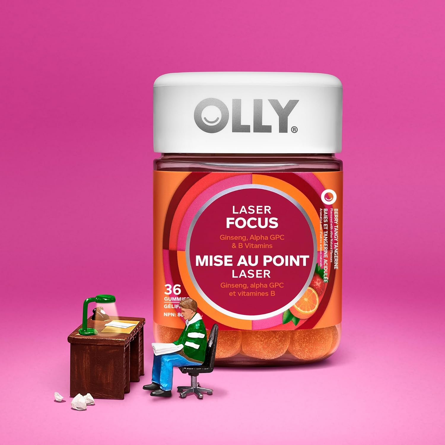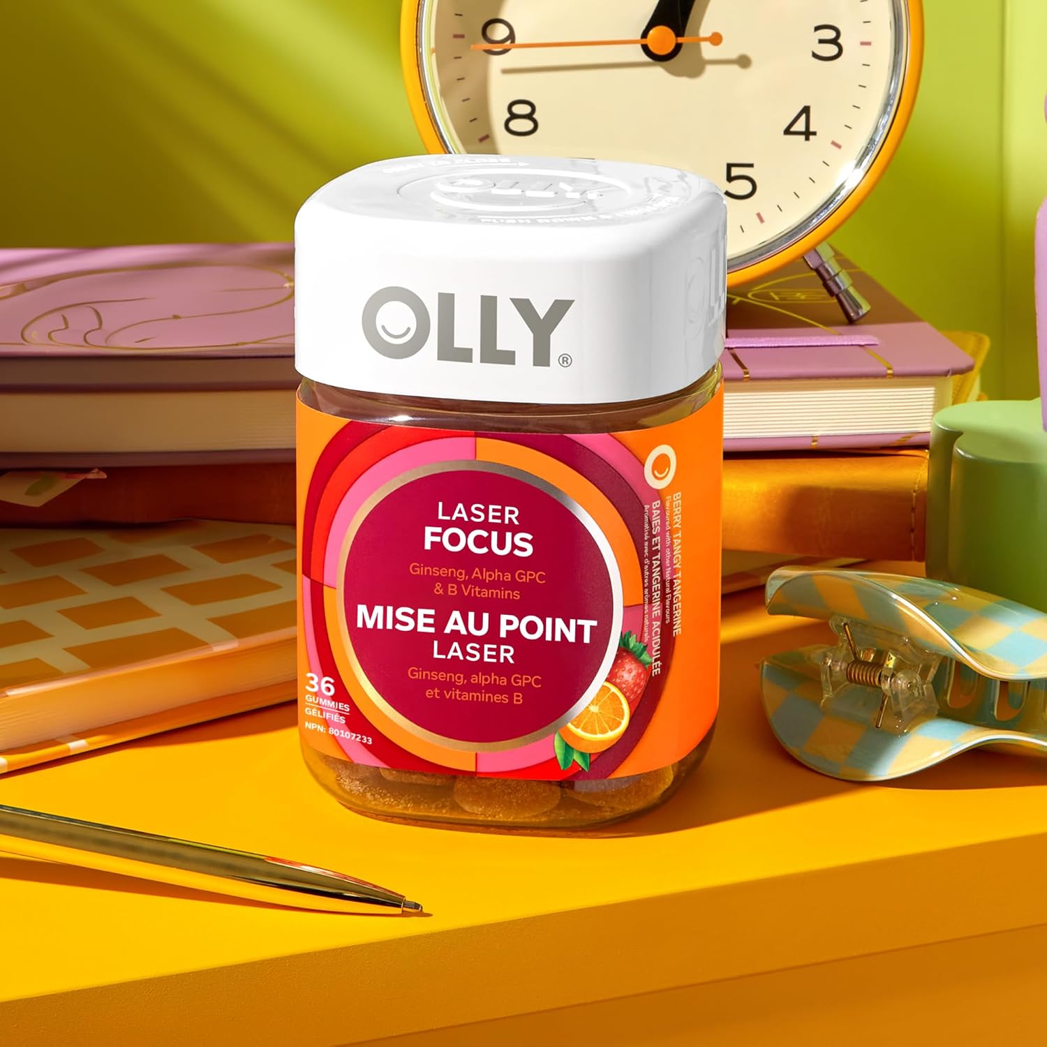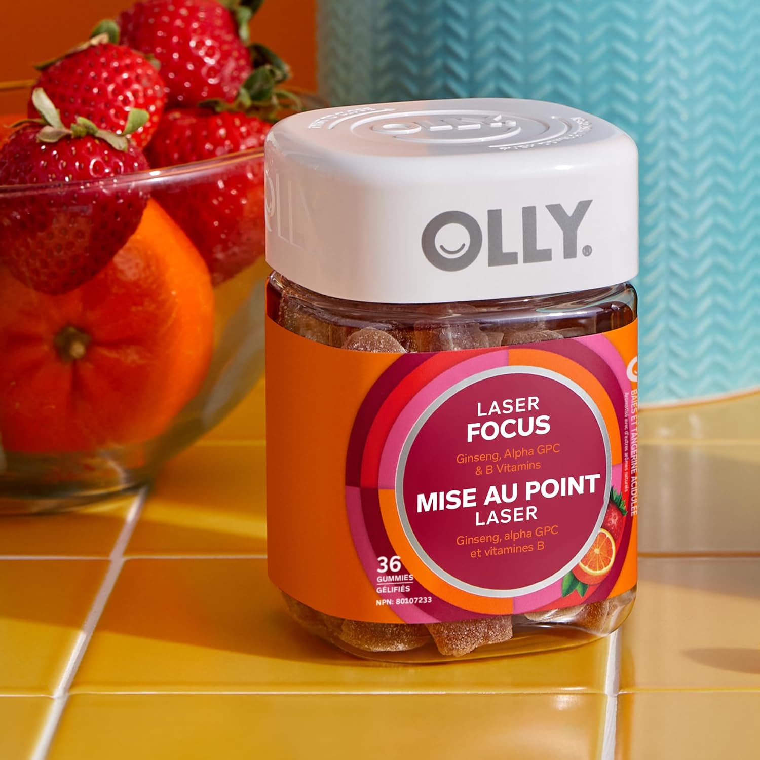 OLLY Laser Focus Gummy, Alpha GPC, B Vitamins, Berry Tangerine Flavor 36 count