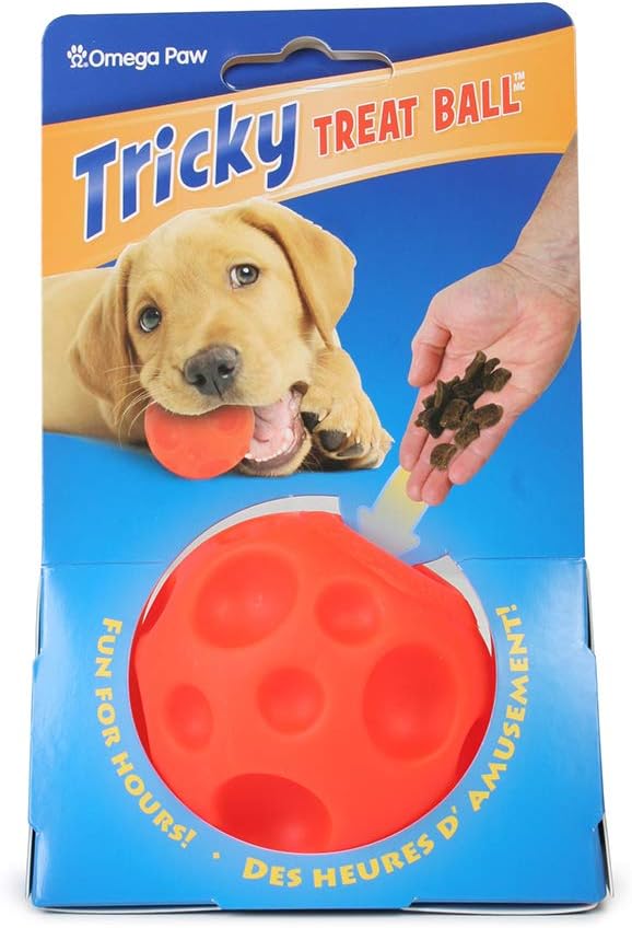 Omega Paw Tricky Treat Ball, Small, Treat Dispensing Dog Toy, Orange