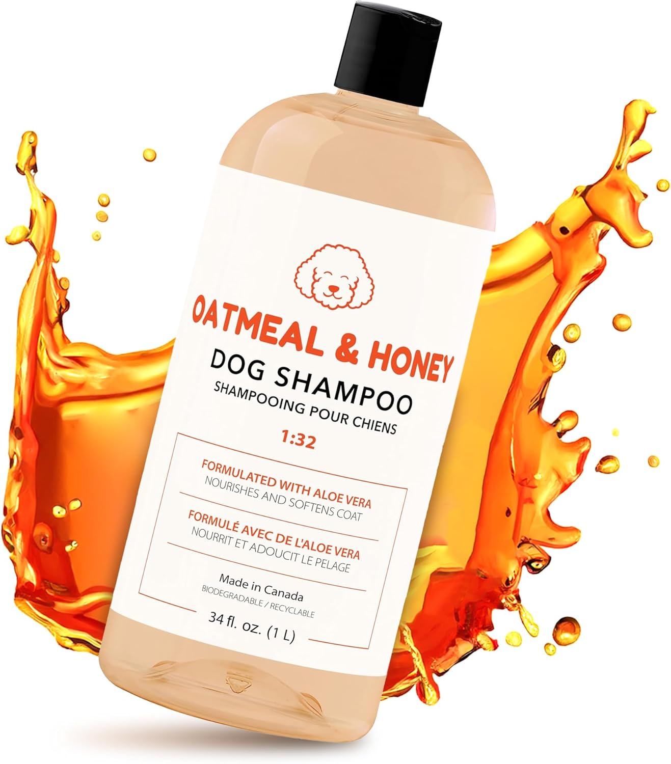 Organic Dog Shampoo, Moisturizing and Nourishing Formula Dog Shampoo with Oatmeal & Honey, Hypoallergenic Pet Shampoo for All Dogs, Puppy Shampoo & Conditioner for Dry Skin Puppy Essentials – 1 Liter