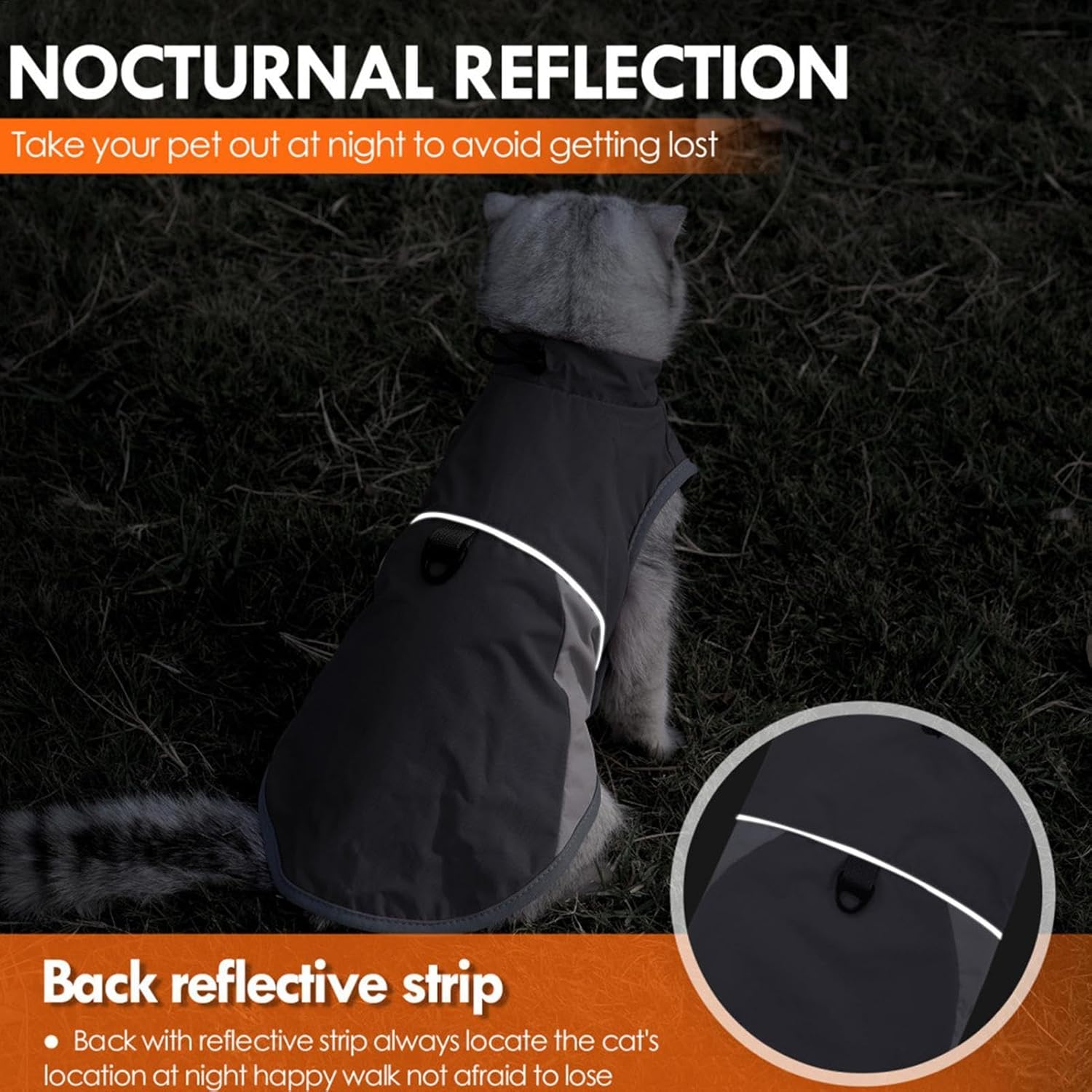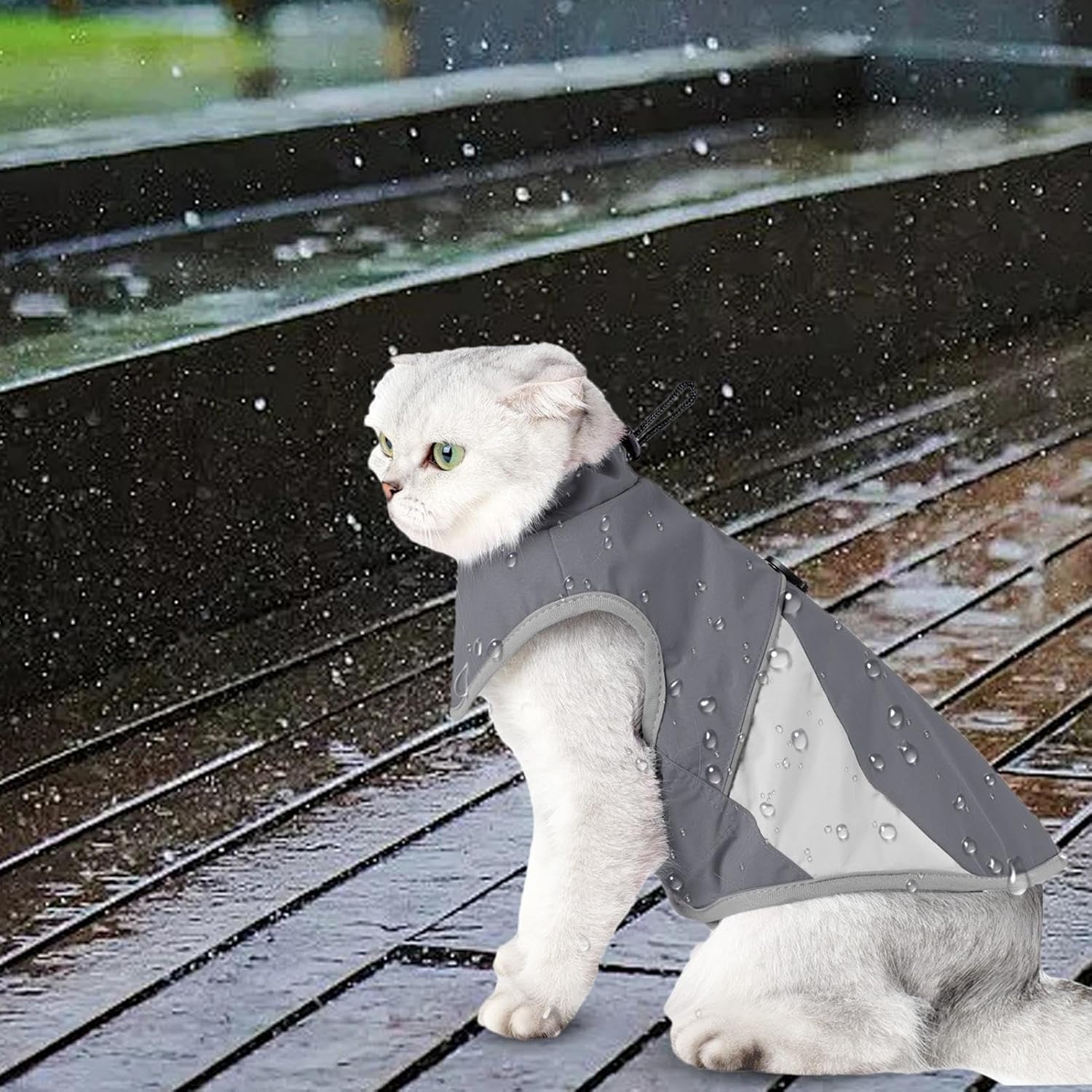 Keep your feline friend warm and dry with the Outdoor Pet Vest designed for cold weather. This waterproof cat jacket features a breathable fabric that ensures comfort and durability during chilly days. The adjustable drawstring allows for easy wear and removal, making it convenient for pet owners. With a lightweight design, this jacket is suitable for small dogs and cats alike.