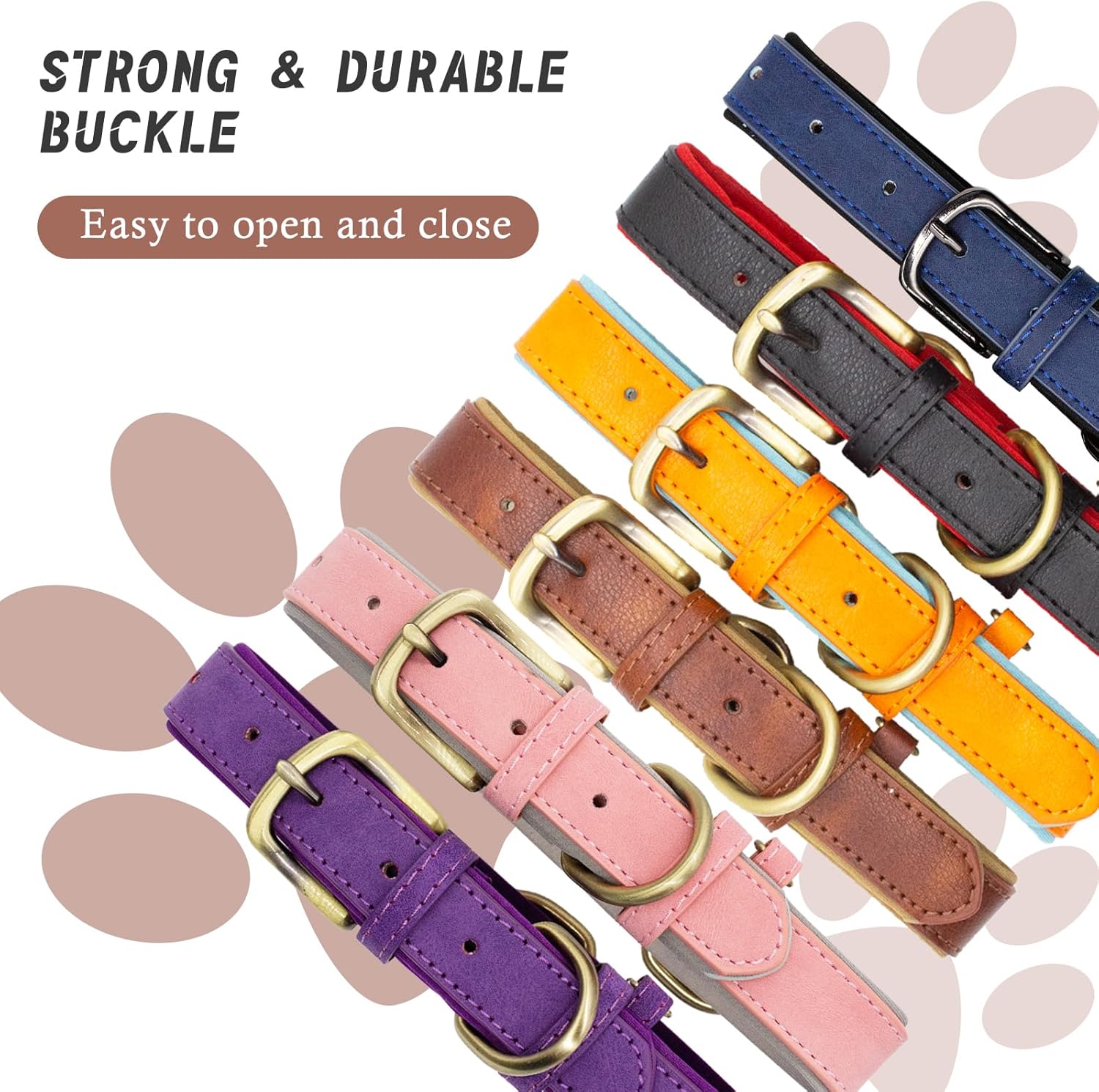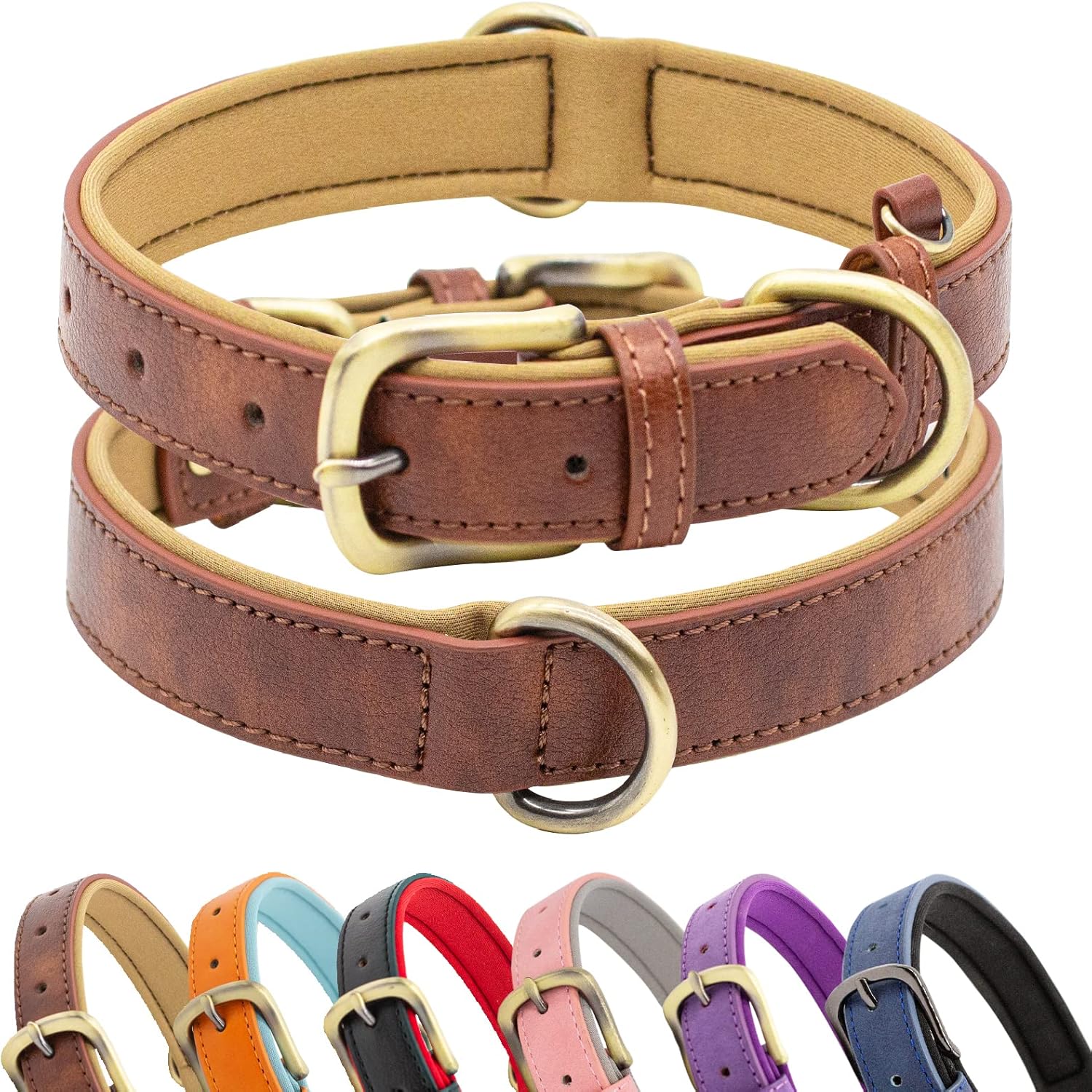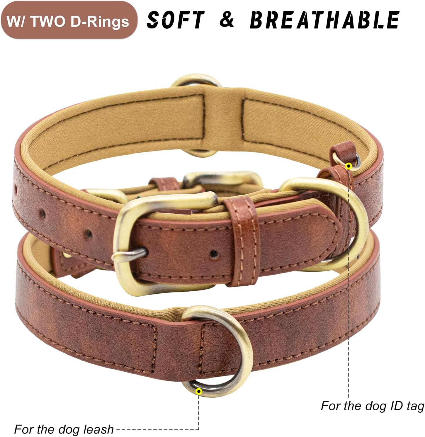Padded Leather Dog Collar, Soft Breathable Adjustable Waterproof Dog Collar Leather with Durable Metal Buckle for Small Medium and Large Dogs, M, Brown