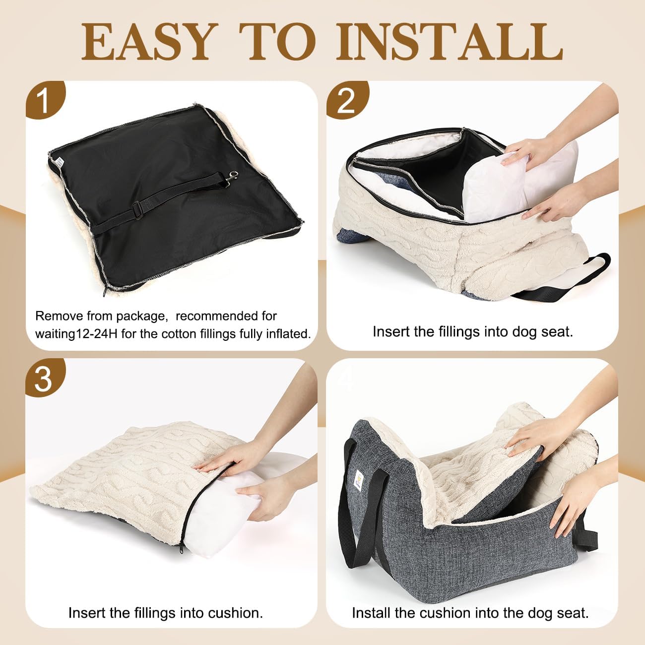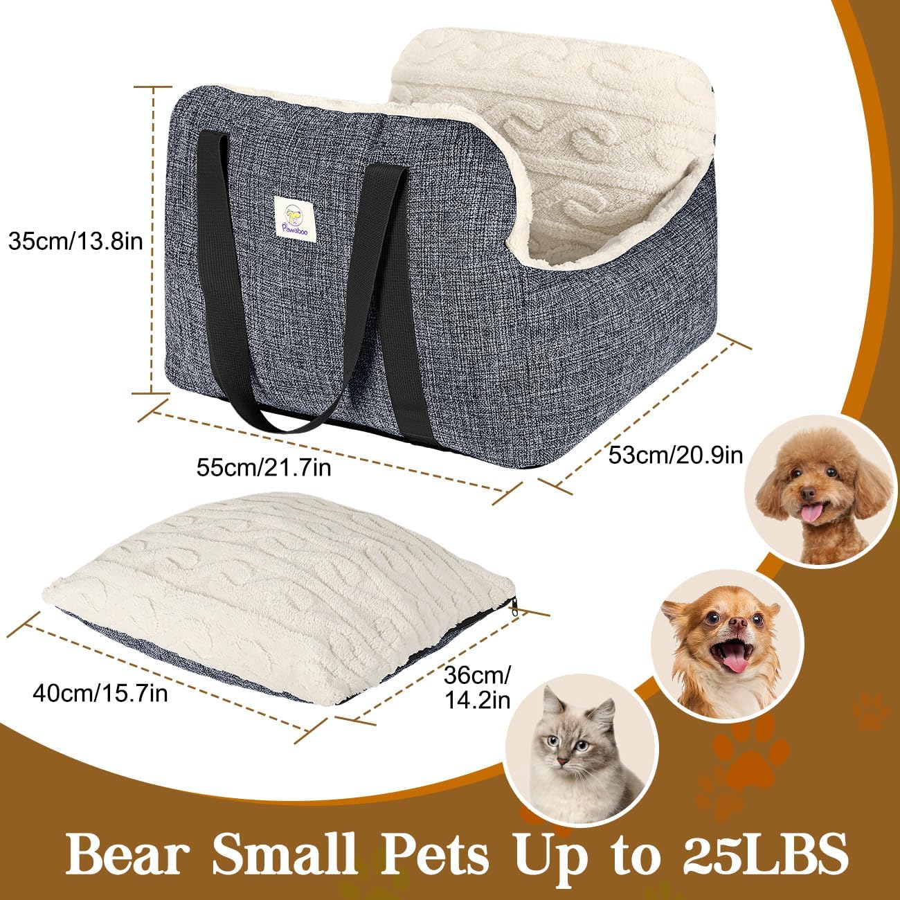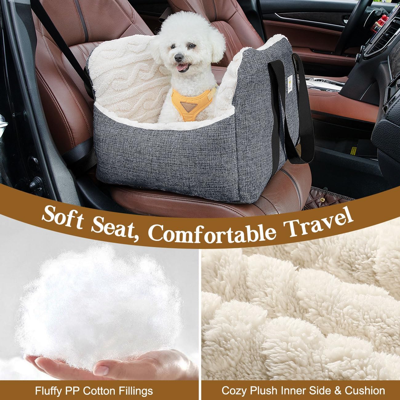 Pawaboo Small Dog Car Seat -Extra Soft- Dog Bed Car Seat for Small Dogs, Puppy Seat for Car with Fixed Buckle and Safety Leash, Thickened Dog Bed Car Seat, Pet Travel Carrier Bed Up to 25lbs (Grey)