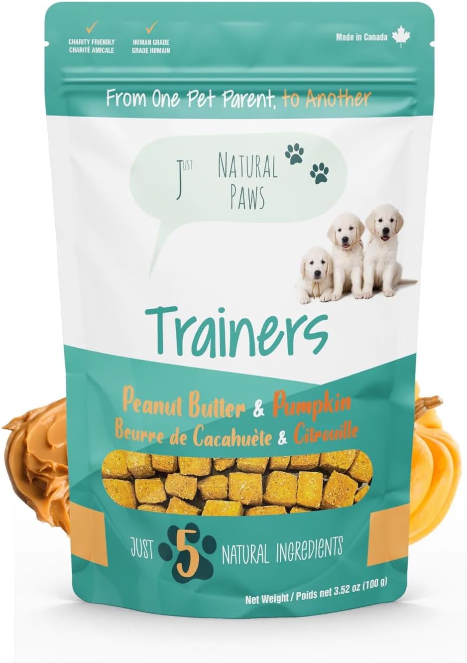 Peanut Butter & Pumpkin Dog Treats – Puppy Training Treats & Healthy Puppy Treats Made in Canada – Natural, Low-Calorie, Vegetarian – Human-Grade – Small, Medium & Large Dogs